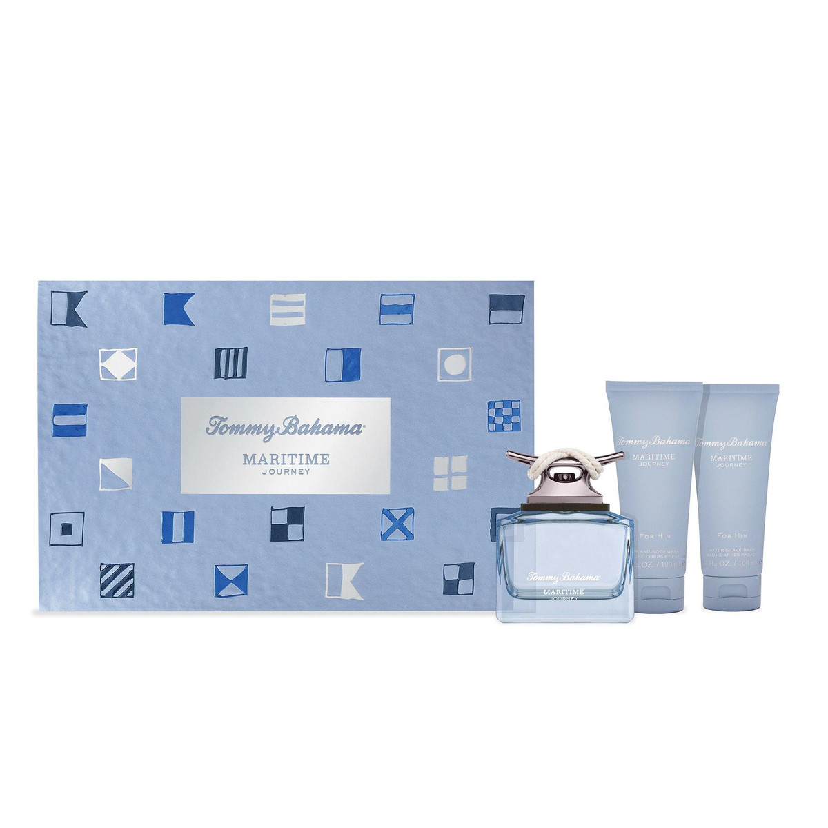 Give the gift of fragrance this year with our Mens 3 piece Maritime Journey cologne gift set! Maritime journey evokes the crisp freshness of a sea breeze and the energizing power of the waves. Clean, sparkling apple and an aromatic heart mirror the brisk freshness of the crashing waves which dries into a reassuring, masculine woody base. This set features one 4.2 oz cologne, one face/body wash and one after shave balm.