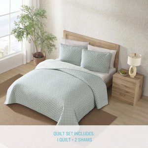 The Tommy Bahama Coastal Batik Quilt Set blends coastal charm with timeless style. Featuring a serene mix of blue and white hues inspired by the ocean, it creates a relaxed, beachy aesthetic. Ideal for coastal or nature inspired décor. Made from 100% cotton with cotton (80%) and polyester (20%) filling, the quilt is lightweight and easy to layer for year-round comfort.