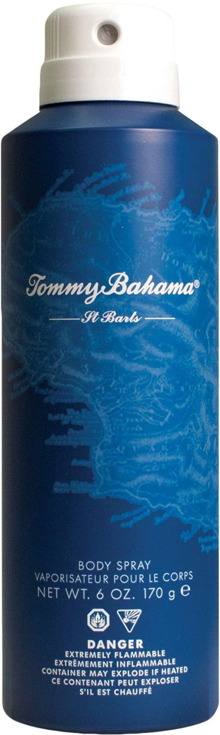 Tommy Bahama St. Barts body spray offers fragrant notes of lime, palm wood, tequila, musk, blue agave green, guava nectar, vanilla, and salty notes. 6 fl. oz. body spray.