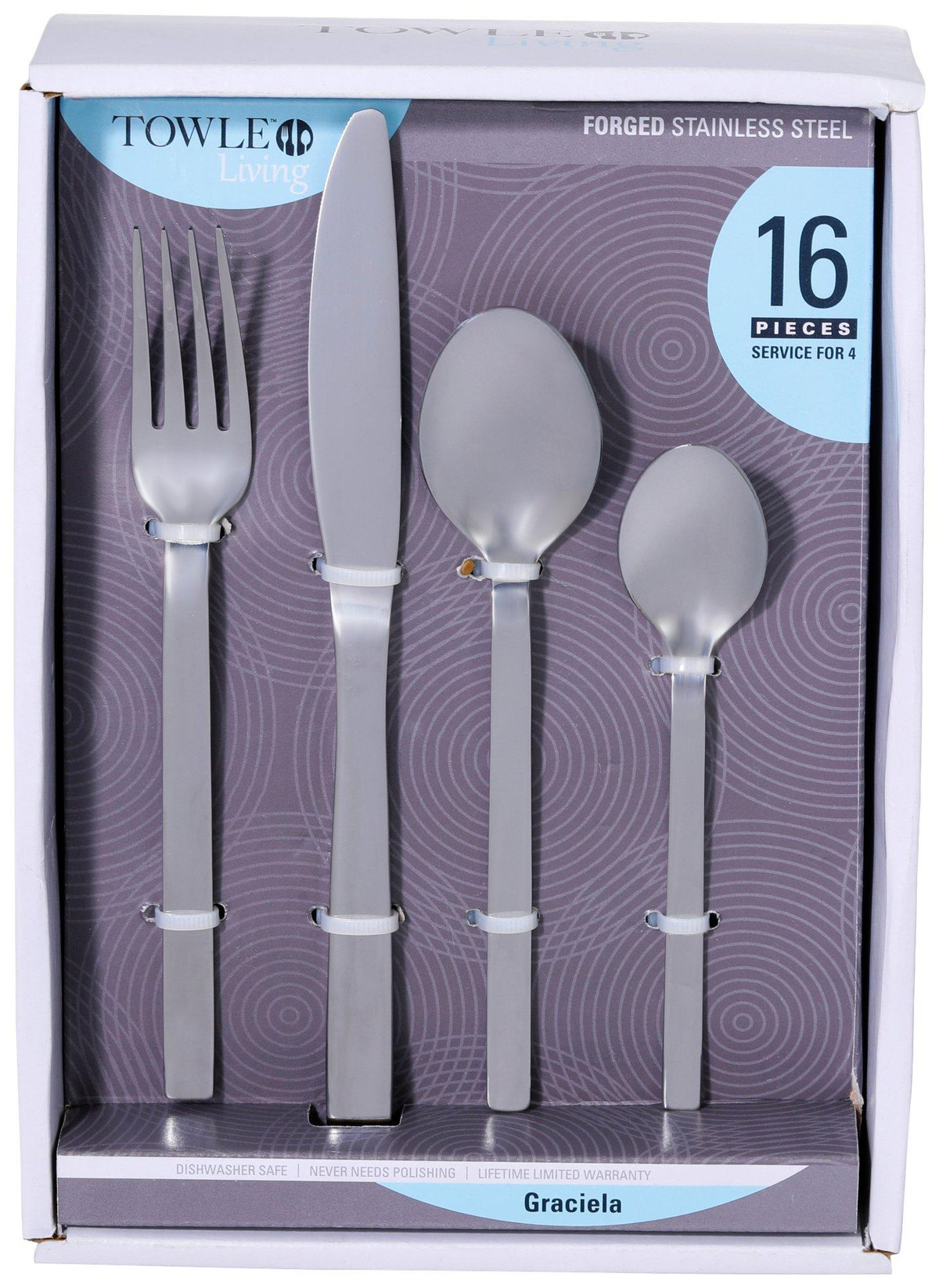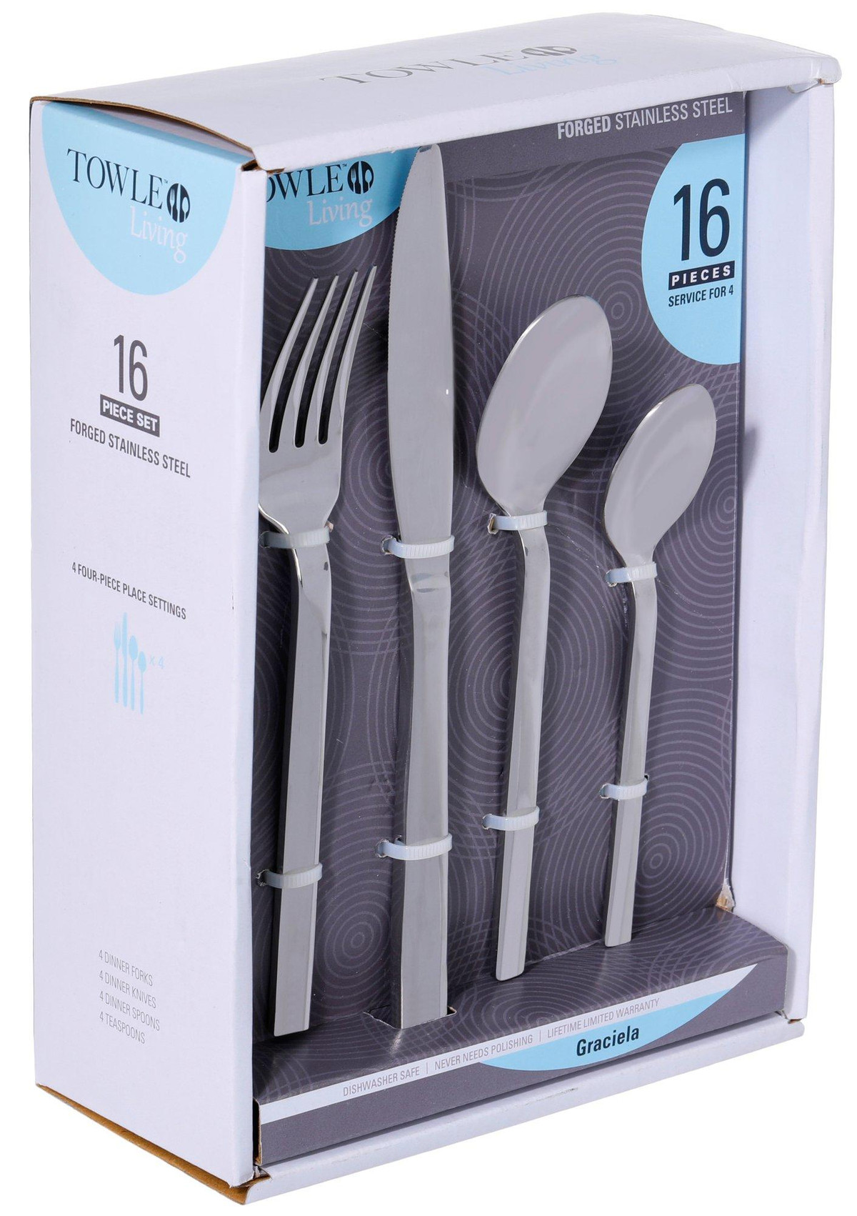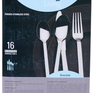 Bring everyday elegance to your table with this 16 Piece Stainless Steel Flatware Set, serving 4. Complete with dinner forks, dinner knives, dinner spoons, and teaspoons, each piece is crafted for durability and a sleek finish. Dishwasher safe and backed by a lifetime warranty, its a stylish and practical addition to any kitchen.