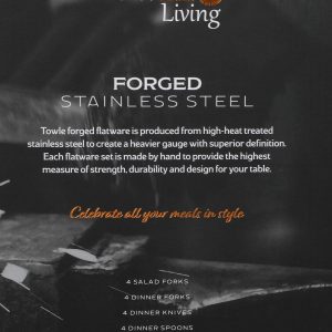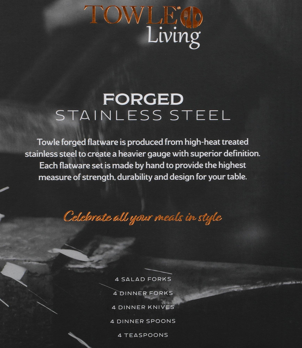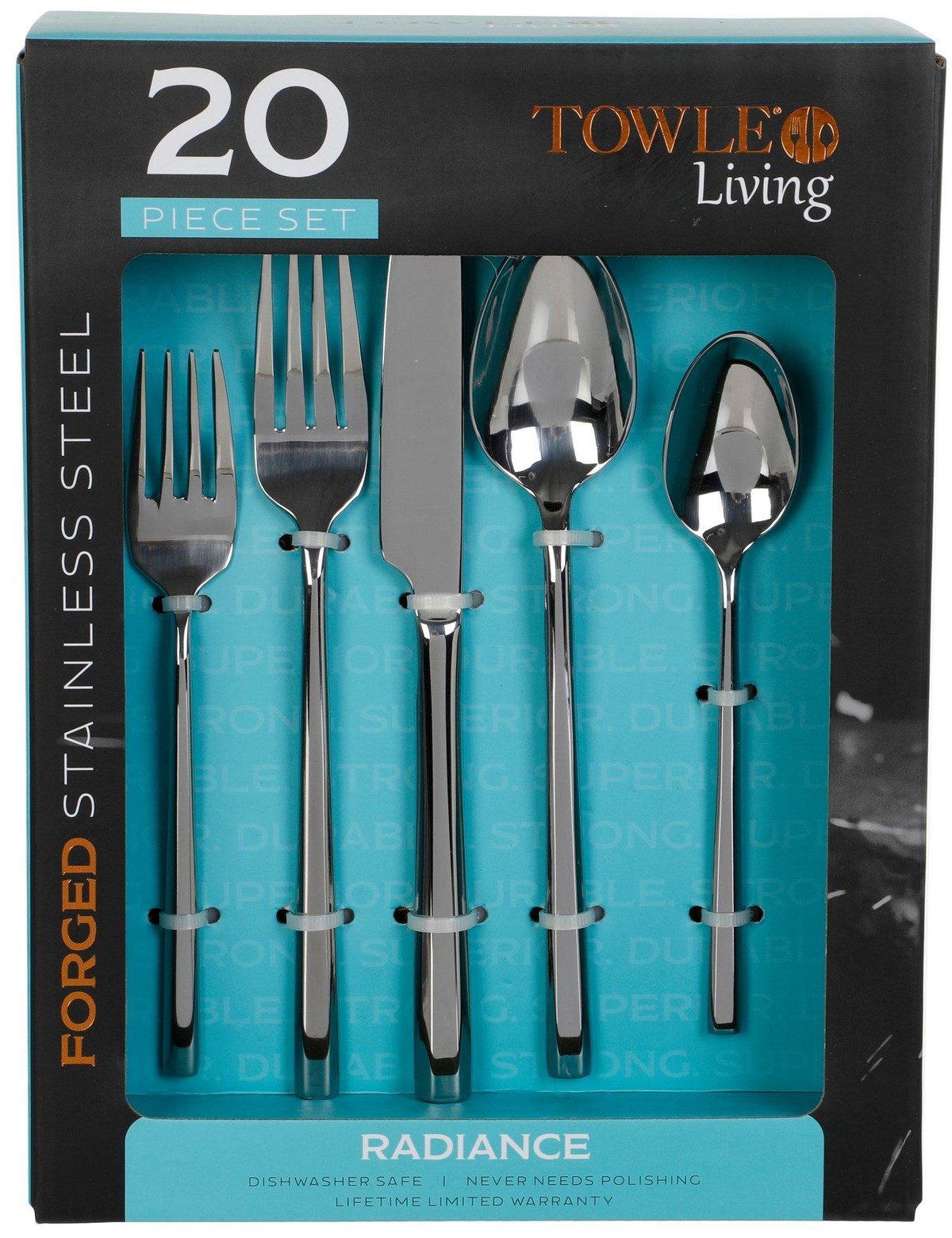 The 20 piece Radiance Forged Flatware set features a sleek handle design, making this set the perfect understated complement to your favorite dinnerware and stemware. Quality crafted of 18/0 stainless steel and perfect for everyday use, this set includes (4) each: dinner fork, salad fork, dinner knife, dinner spoon and teaspoon. Dishwasher safe for simple, thorough cleaning, and never needs polishing.