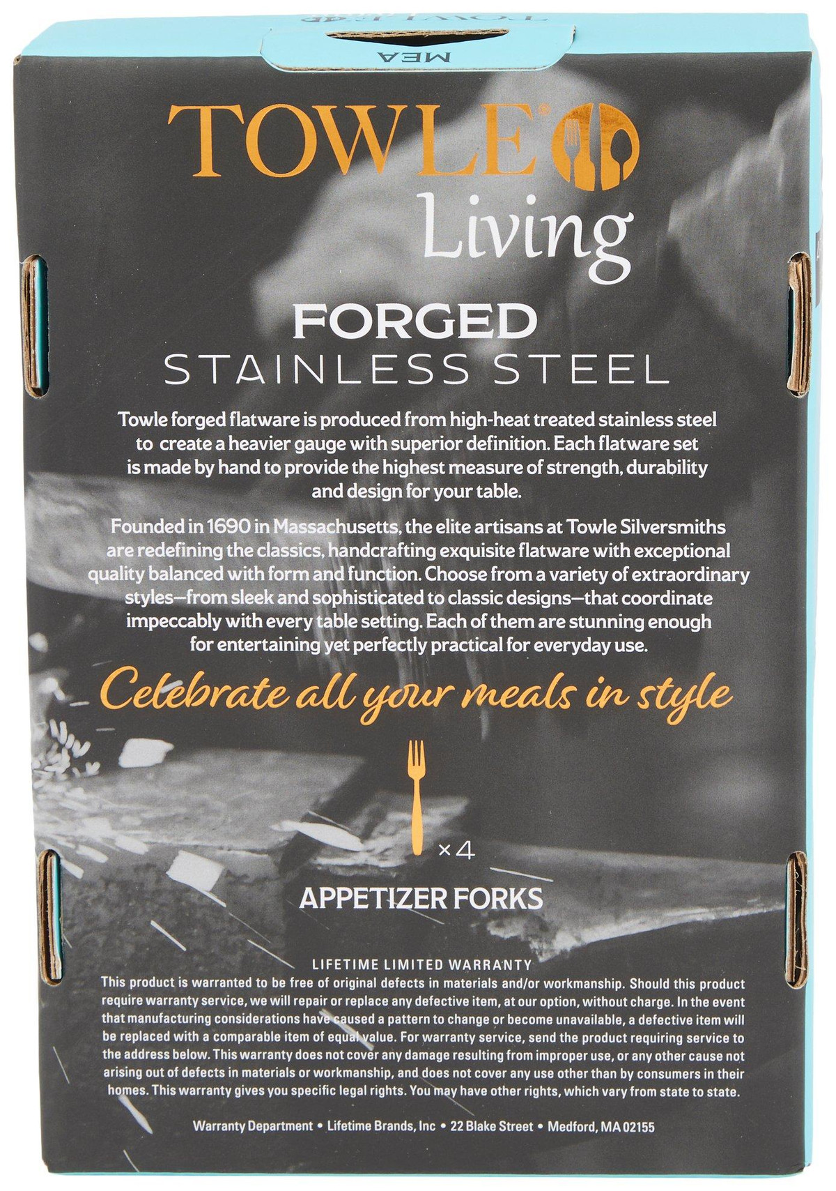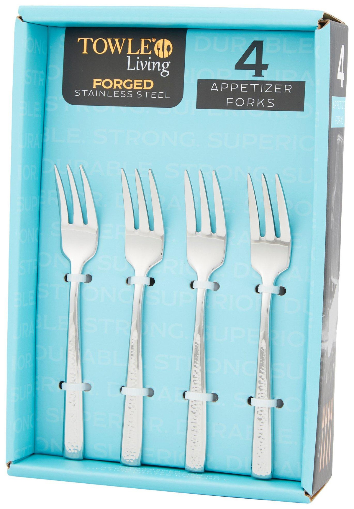 Elevate your dining experience with this set of 4 appetizer forks. Crafted from forged stainless steel, these forks offer exceptional durability and a sleek, modern design. Perfect for enjoying appetizers, their elegant construction adds a touch of sophistication to any table setting.