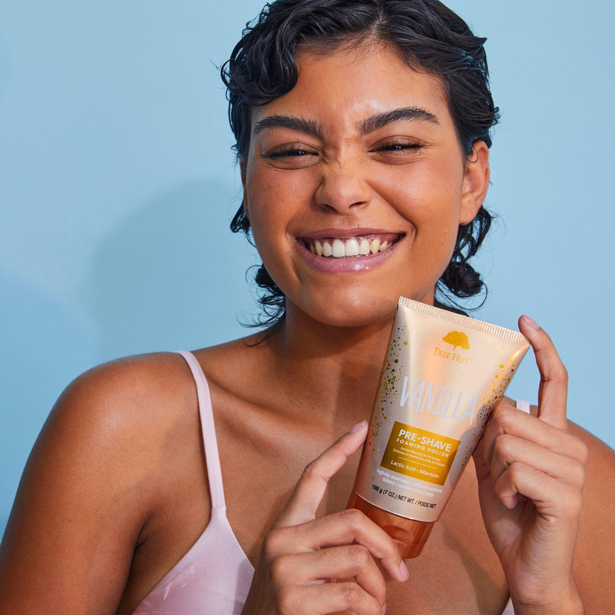 Start your smoothest shave with Vanilla Pre-Shave Foaming Polish. Formulated with Lactic Acid and Allantoin in mind to sweep away impurities, soothe skin, and unclog pores to prep skin for an even closer shave. The creamy scent of Vanilla will leave your sensitive areas lightly polished, skin feeling soft. This formula features refined sugar crystals, no dyes, and is lightly scented for use on legs, underarms, and bikini areas. Contains 7 fl.oz.