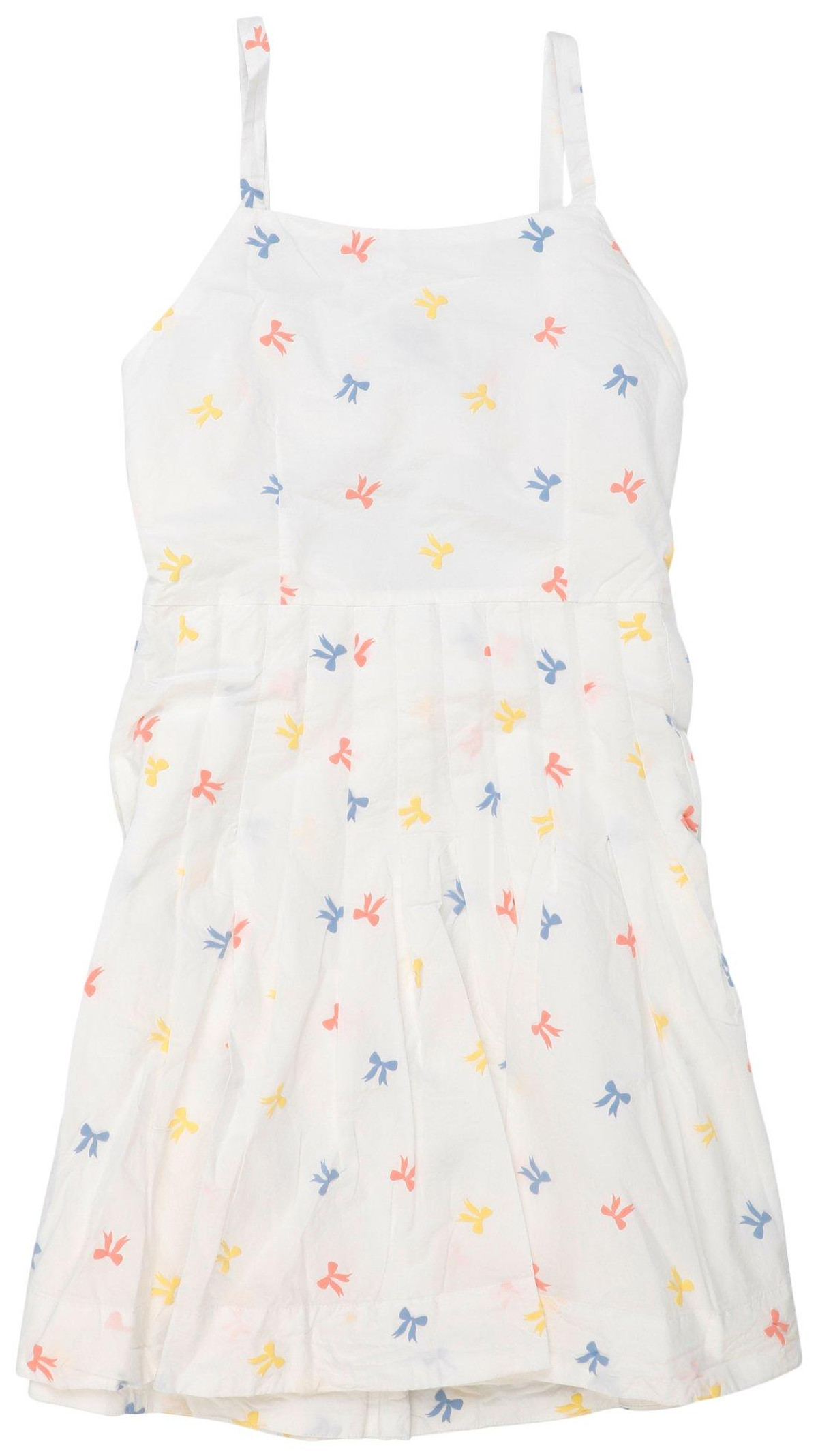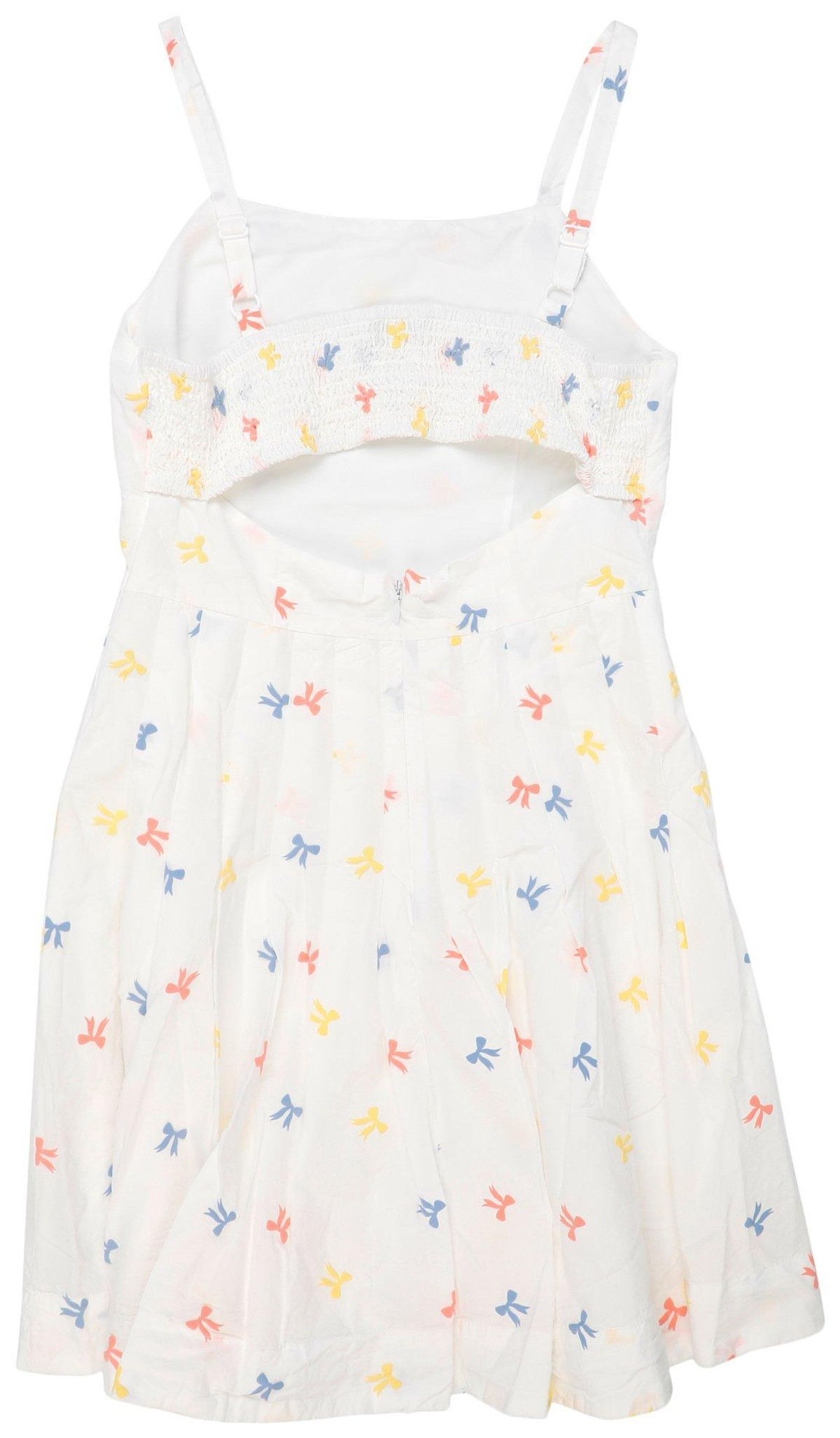 Let your little one shine in the Big Girls Allover Bows Print Open Back Dress. The full skirt and full lining add a touch of elegance and movement, making it ideal for twirling. Features a smocked back panel with an open back, for a stylish and flexible fit. Adorned with a delicate bow pattern, this dress is perfect for any special occasion or a fun day out. Fabrication is Shell: 100% cotton, Lining: 100% polyester. Dress length measures approximately 32 in.