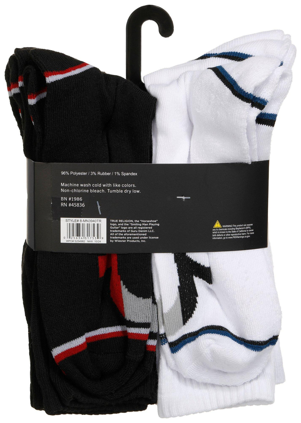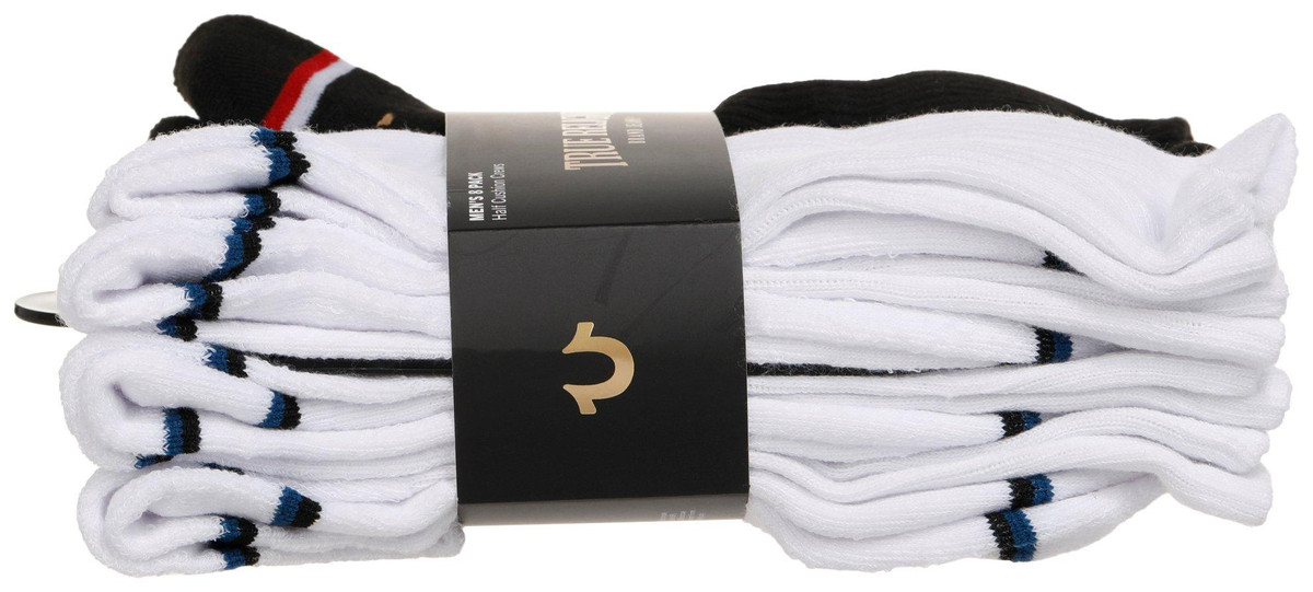 This is a pack of 8 men’s half cushioned crew socks in a multicolor striped design. They are machine washable and suitable for casual wear. The sock length is mid-calf, and they are suitable for winter, summer, fall, and spring seasons. These socks are ideal for activities like gym training and walking. Fabrication 96% polyester, 3% rubber, 1% spandex. Fits sock size 10-13, shoe size 8-12.5.