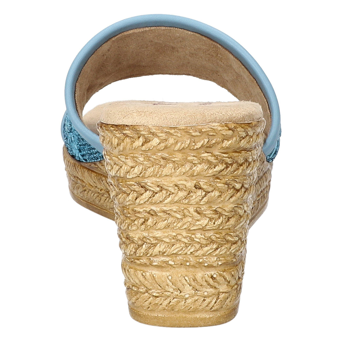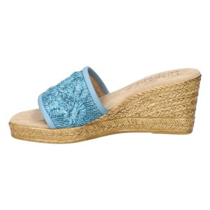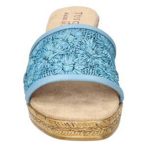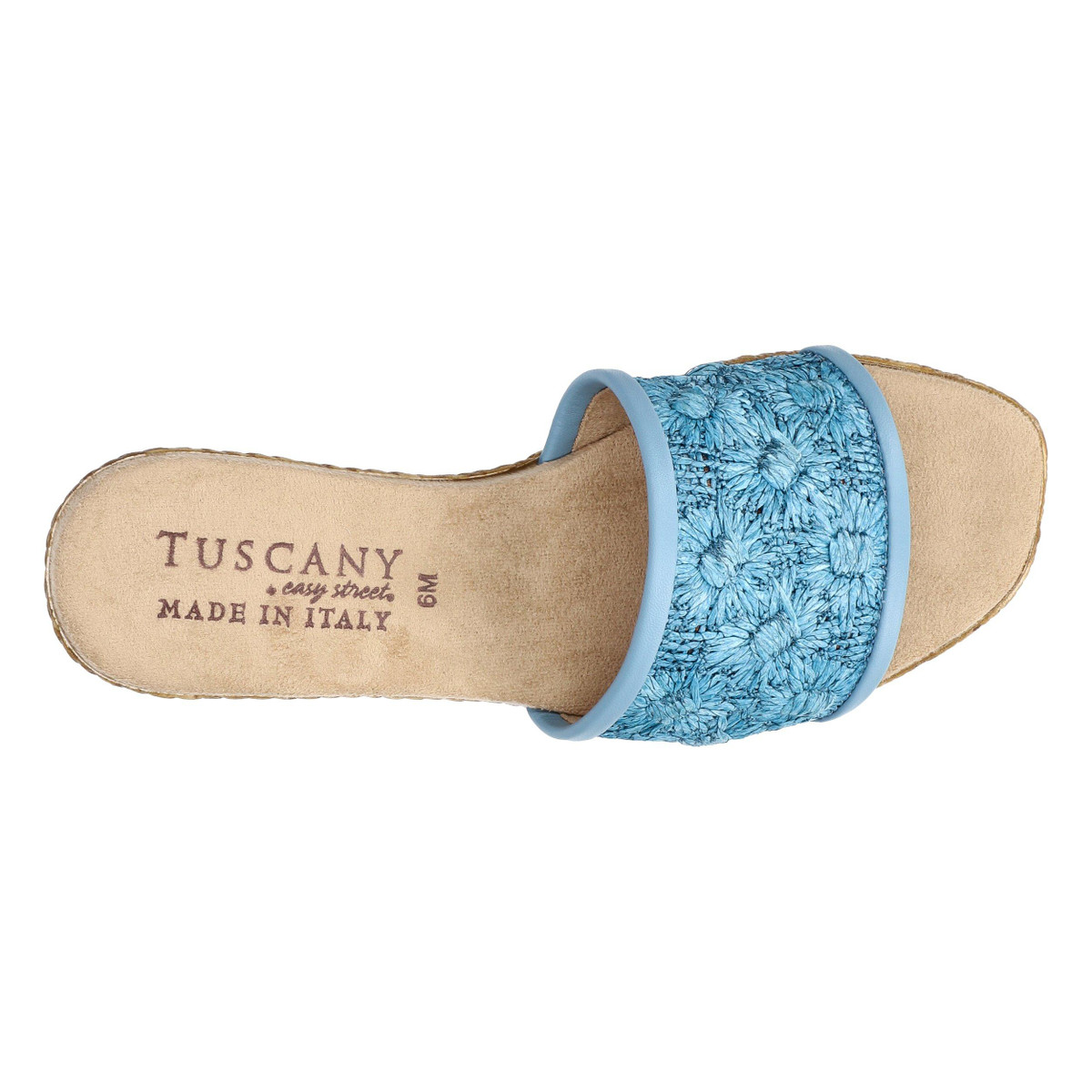 Set your sights on the Italian-crafted Ricci wedge slide sandal from Tuscany by Easy Street. Its raffia one-banded upper with a feminine floral design will enhance all your summer outfits with Italian elegance. The lightweight wedge with delicate textured details resembling woven jute, and a generously padded insole from heel to toe, ensures all-day comfort and fashion.