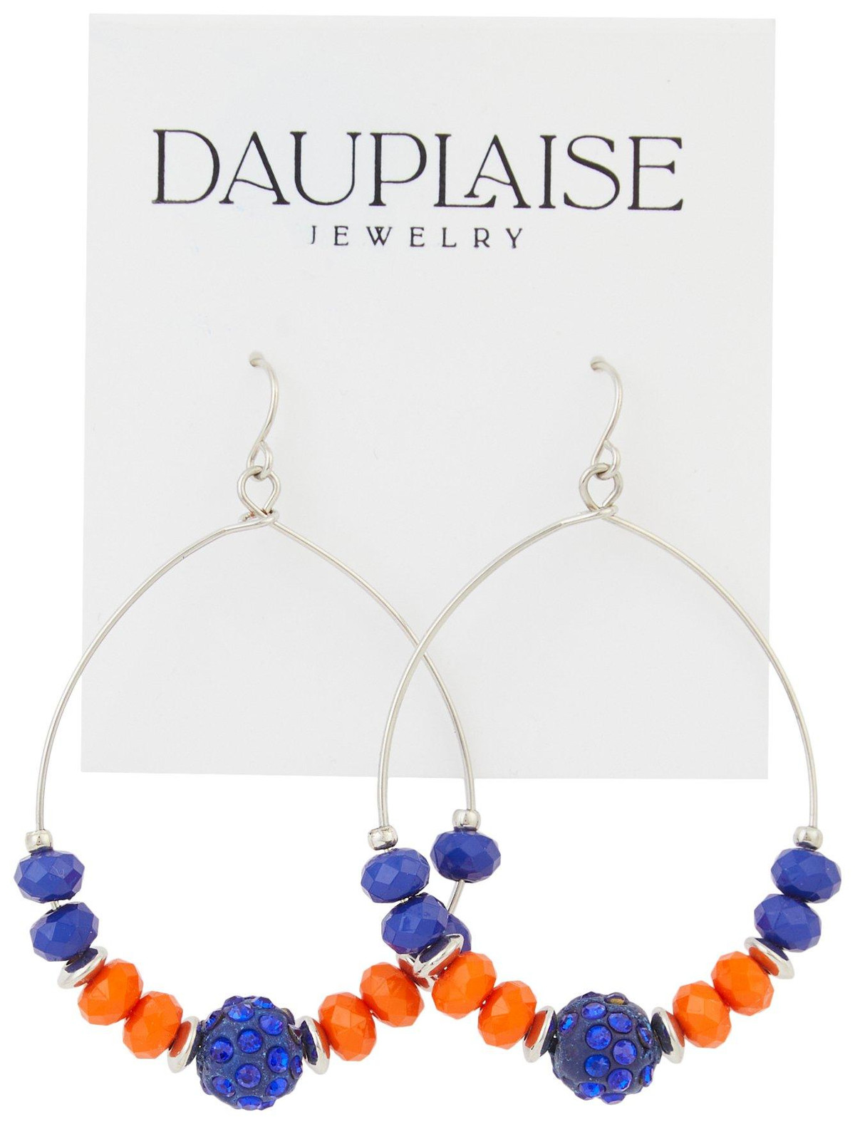 Add a pop of team pride with these UF Gator beaded wire hoop earrings. Designed with a fish hook back for easy wear, each hoop features vibrant blue and orange beads that show off your school spirit in style. Perfect for game day or everyday flair.