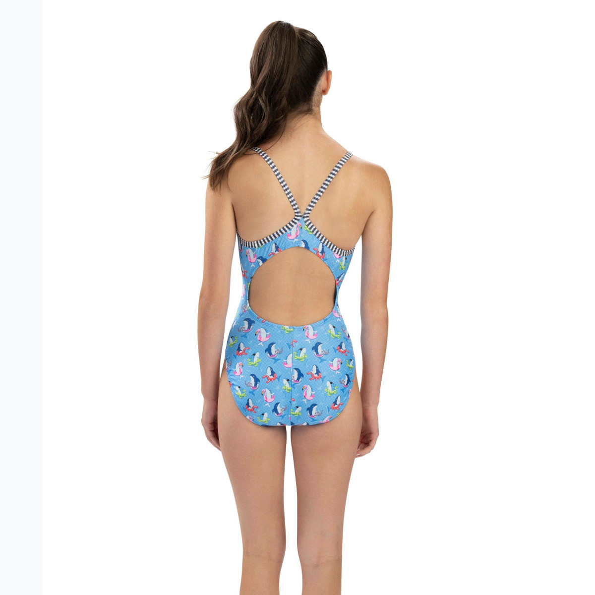 Dive into a wave of fun with the Uglies Fin Floats V-Back One Piece, where sharks are chilling in adorable animal pool floats! This suit is perfect for making a splash and will have you looking sharp in and out of the water. With chlorine resistance and UPF 50+, you can swim confidently while keeping colors vibrant and the fit snug.
