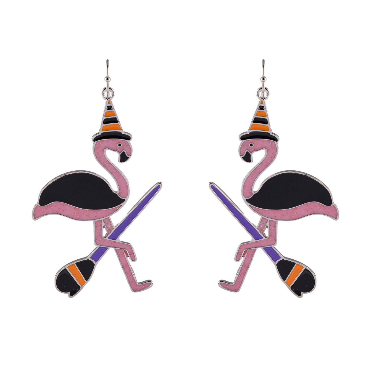 Casting spells and striking poses the Flamingo Witch Halloween Earrings are a magical mix of sass and sparkle. Dressed in tiny pointed hats with a splash of pink charm each flamingo brings a whimsical twist to spooky season style. Light enough for all night broom rides and bold enough to cackle with confidence they are perfect for costume parties festive outings or just adding a bewitching wink to your everyday.