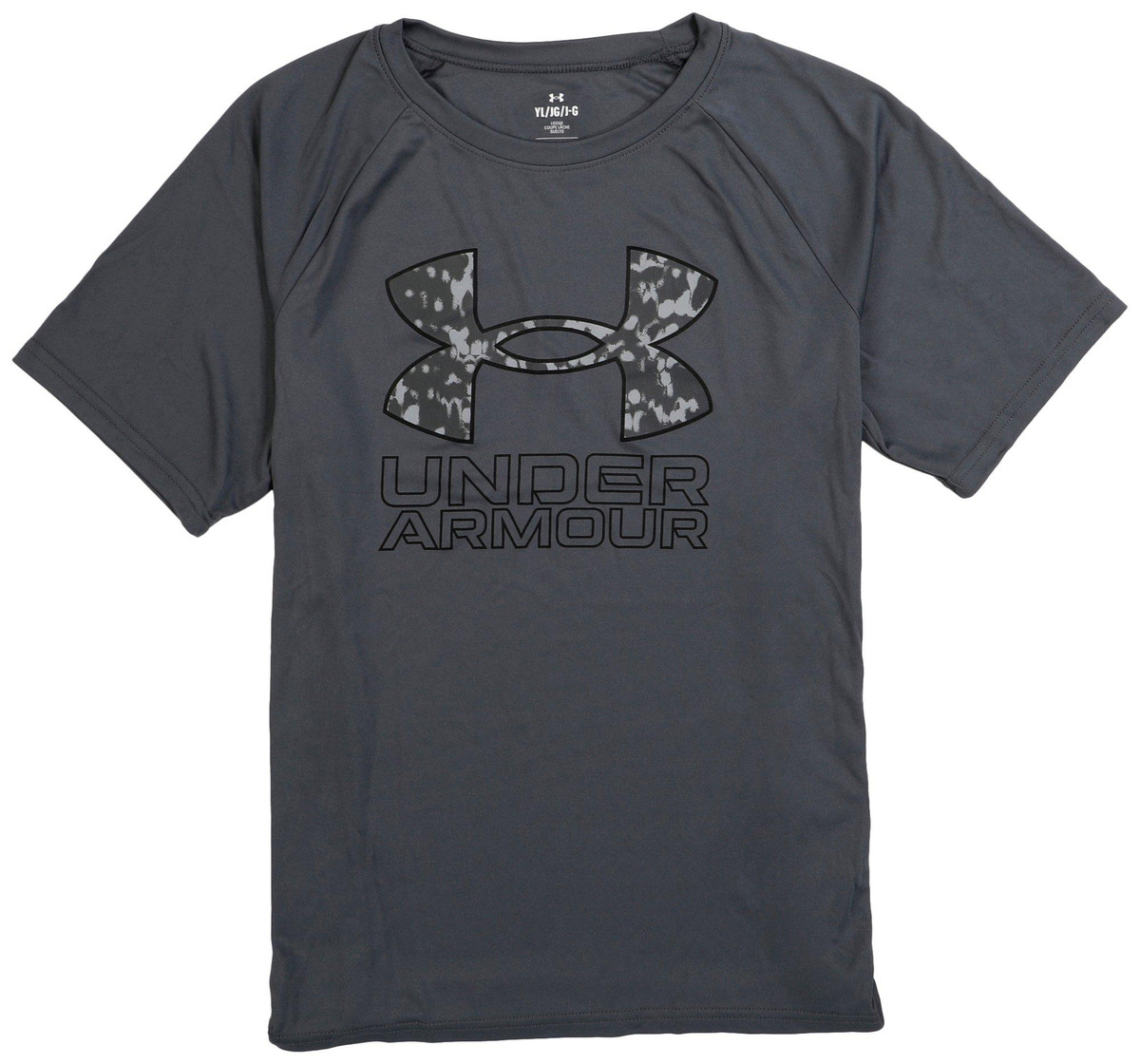 Keep him cool and comfortable in the Big Boys’ Tech Hybrid Print Short Sleeve T-Shirt. Made with 100% polyester UA Tech fabric, its ultra-soft, quick-drying, and designed to wick away sweatperfect for playtime or practice.