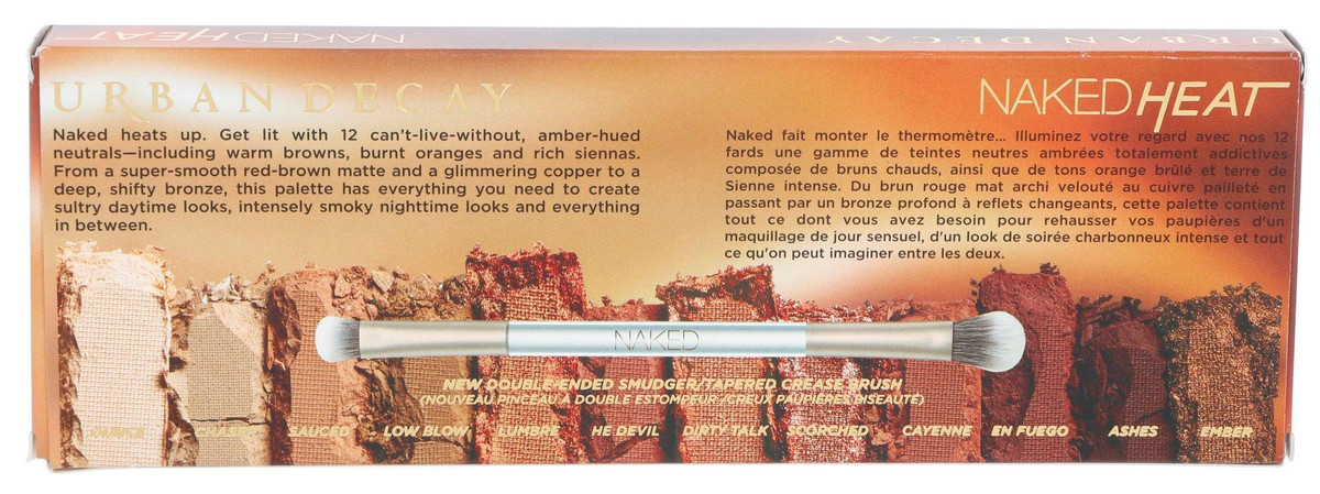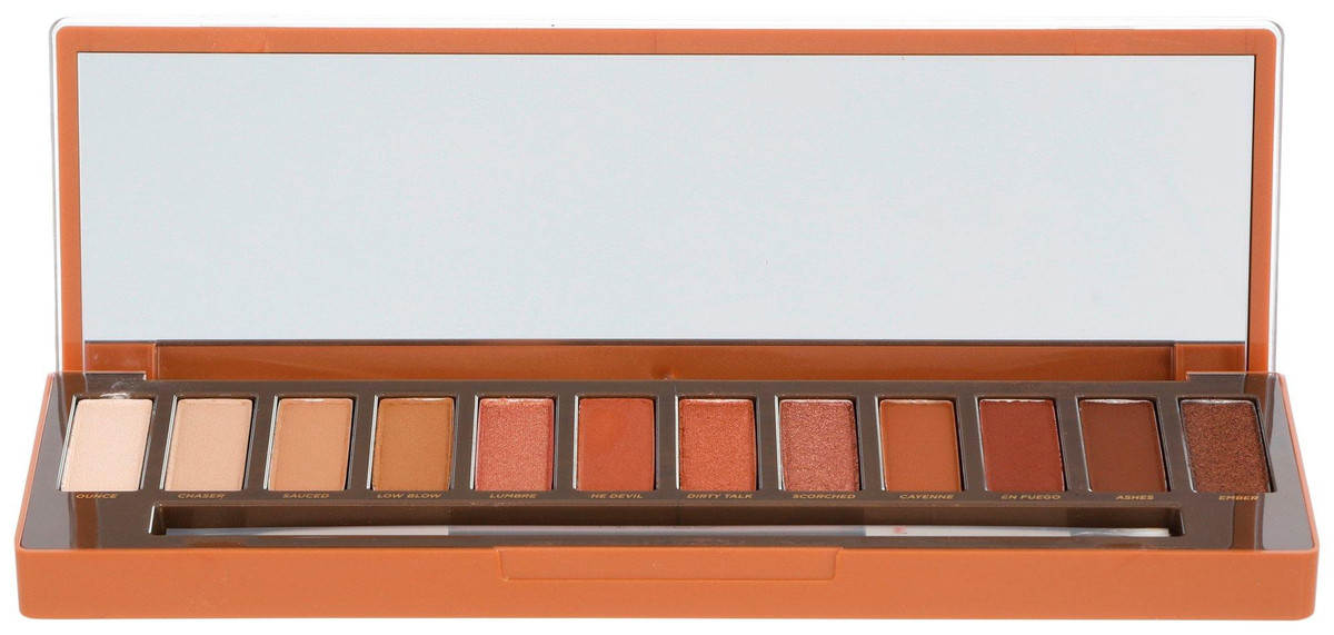 This smokin’ eyeshadow palette includes warm browns, burnt oranges, and rich siennas. Its mix of coppery mattes, metallics, and shimmers makes for endless combinations. Made with our signature Naked formula, each shade delivers velvety texture, richly pigmented color, and extreme blendability.