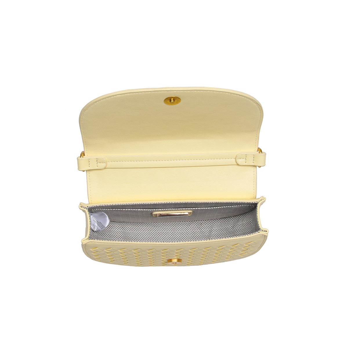 Elevate your accessory game with this braided flap crossbody! The woven all-over texture and chic chain strap make it a standout piece, while the gold hardware adds a touch of sophistication. Inside, the printed fabric lining, and zip pocket ensure your essentials are stylishly secure. Measures 8.625 L x 2.75 W x 6 H.