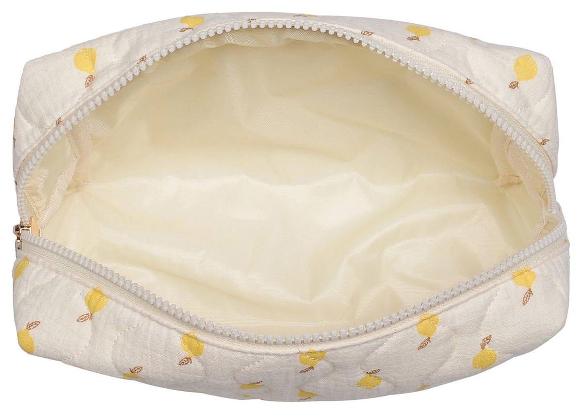Quilted printed Lemon Patten , zipper pouch, great for cosmetics. Measures: 8.25 x x 3 x 5.13 Inches