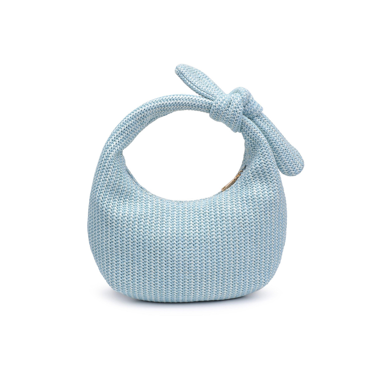 Introducing your new fave clutch, made from chic vegan leather. With a stylish zipper closure and an intricate woven design, this clutch boasts a unique knot handle detail and elegant gold hardware. Inside, the fabric lining keeps your essentials in check with a handy zip pocket. Perfect for adding a trendy touch to any outfit!