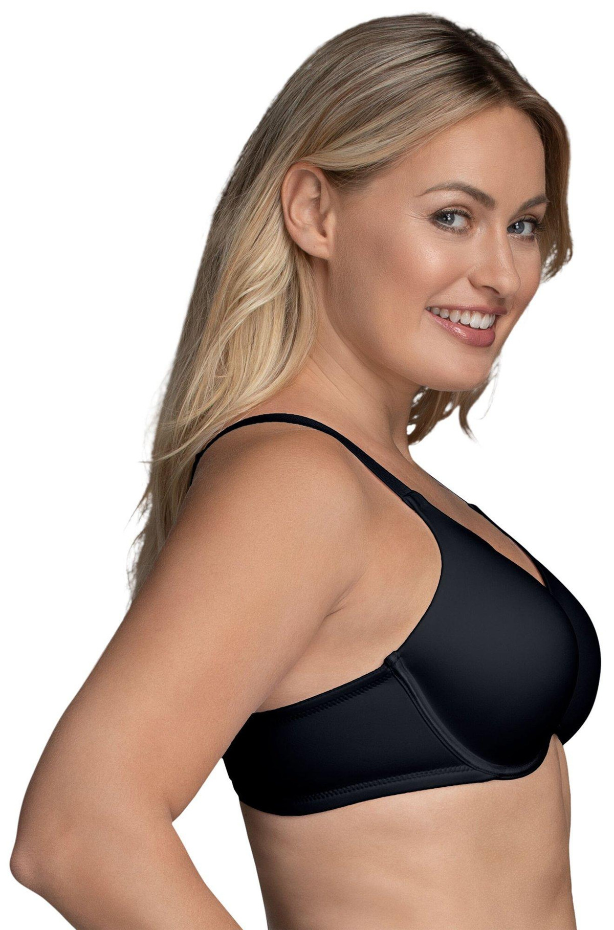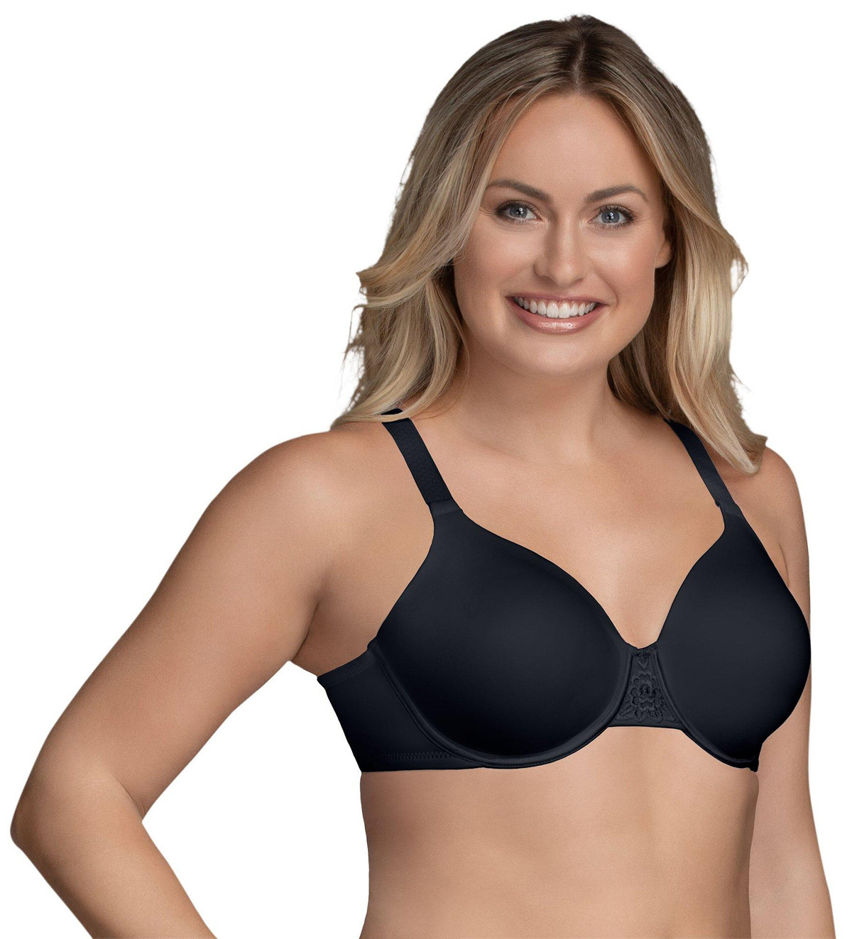 Vanity Fair Back Smoother underwire bra offers full coverage contour cups, comfortable stay-in-place straps and soft microfiber wings for a seamless look under clothes. Style 76380.