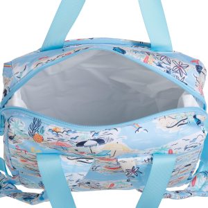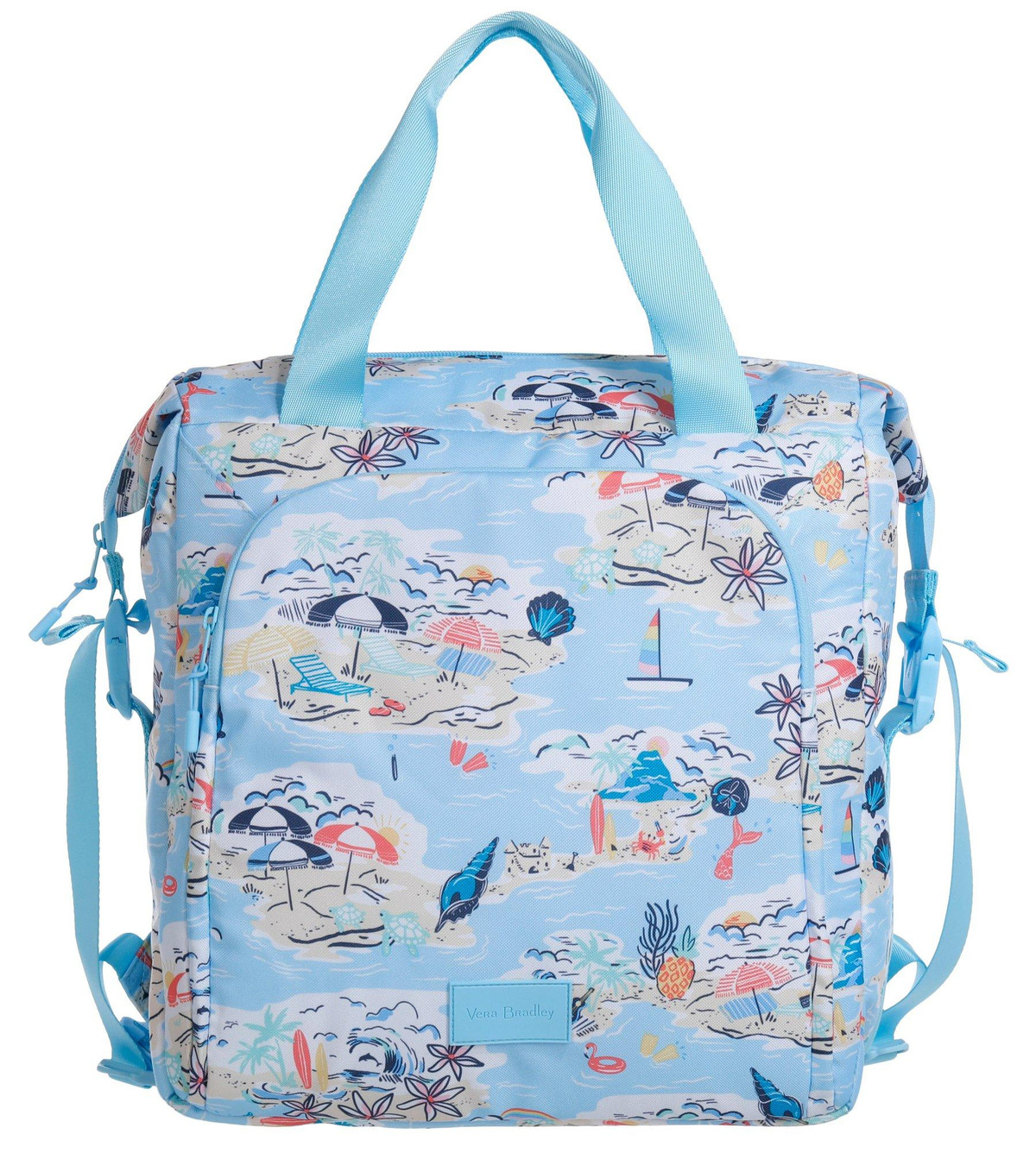 Make every outing brighter with the Vera Bradley Lighten Up Insulated Cooler Tote in Beach Treasures. This vibrant backpack keeps food fresh with a zip closure and food safe lining. Features a front zip pocket and adjustable straps for easy carrying. Perfect for picnics or market runs. Measures 12 by 13 by 6.5 inches. Weight: 1.54 lb