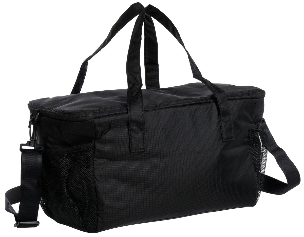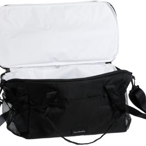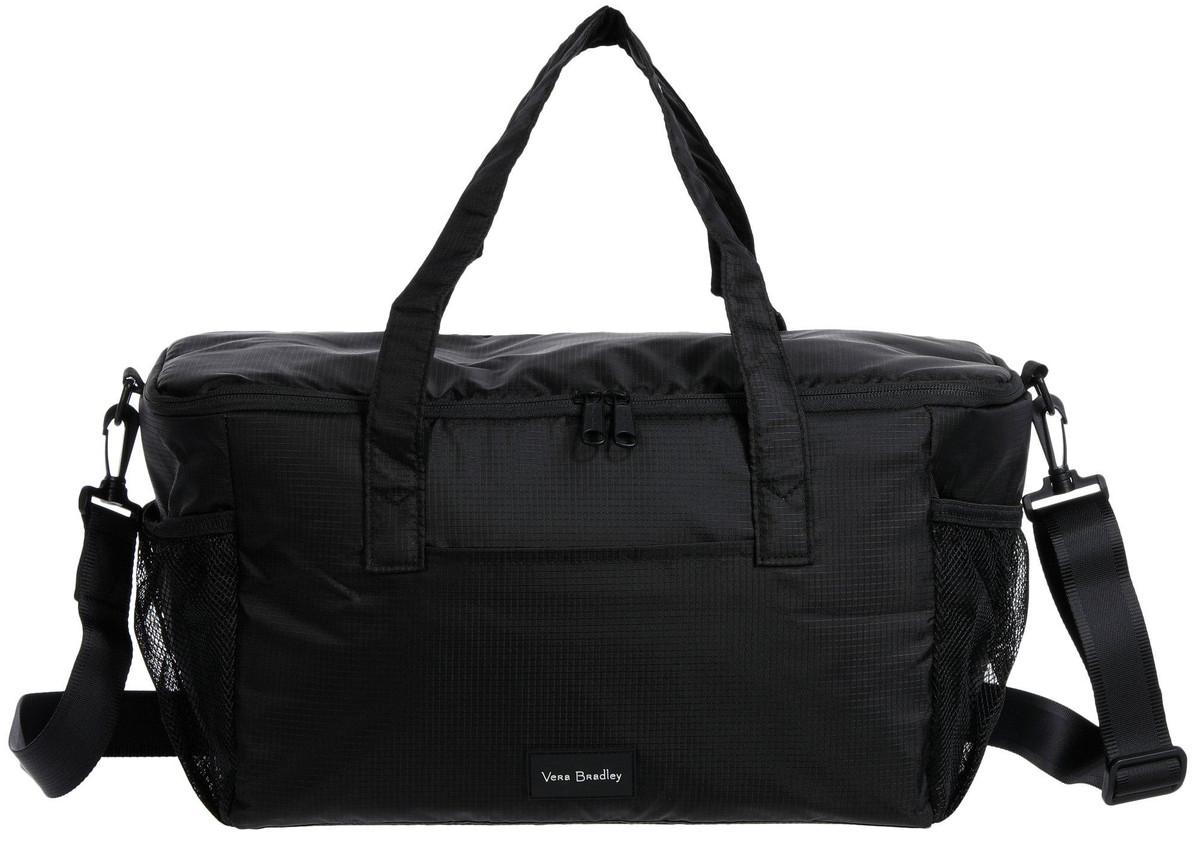 The Vera Bradley duffle cooler bag combines style and function with a spacious insulated interior and mesh side holders for added storage. Made from lightweight ripstop fabric, it features a zip closure and removable adjustable shoulder straps for easy carrying. Perfect for picnics, beach days, or travel, this cooler keeps items fresh while offering the convenience of a tote.