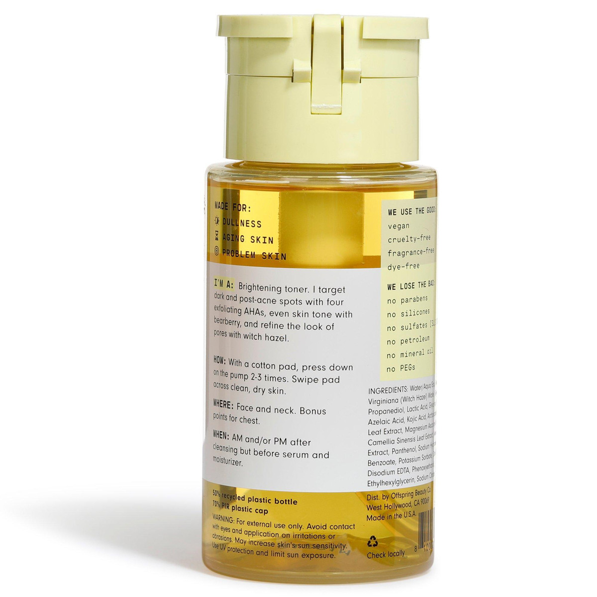 Weekend Glow Daily Brightening Solution is a powerful brightening treatment for uneven skin tone, dark spots, and those lingering post-breakout marks. This exfoliating toner features a four-acid complex with natural skin-brighteners like Kojic and Azelaic Acid, AHAs, Vitamin C, and Bearberry Extract, a natural alternative to hydroquinone. Gentle enough for daily use.