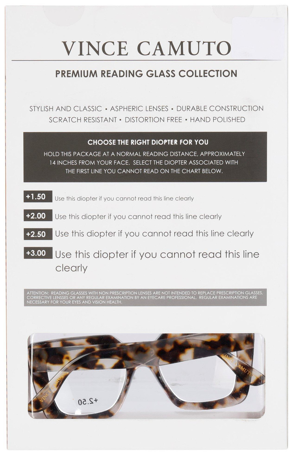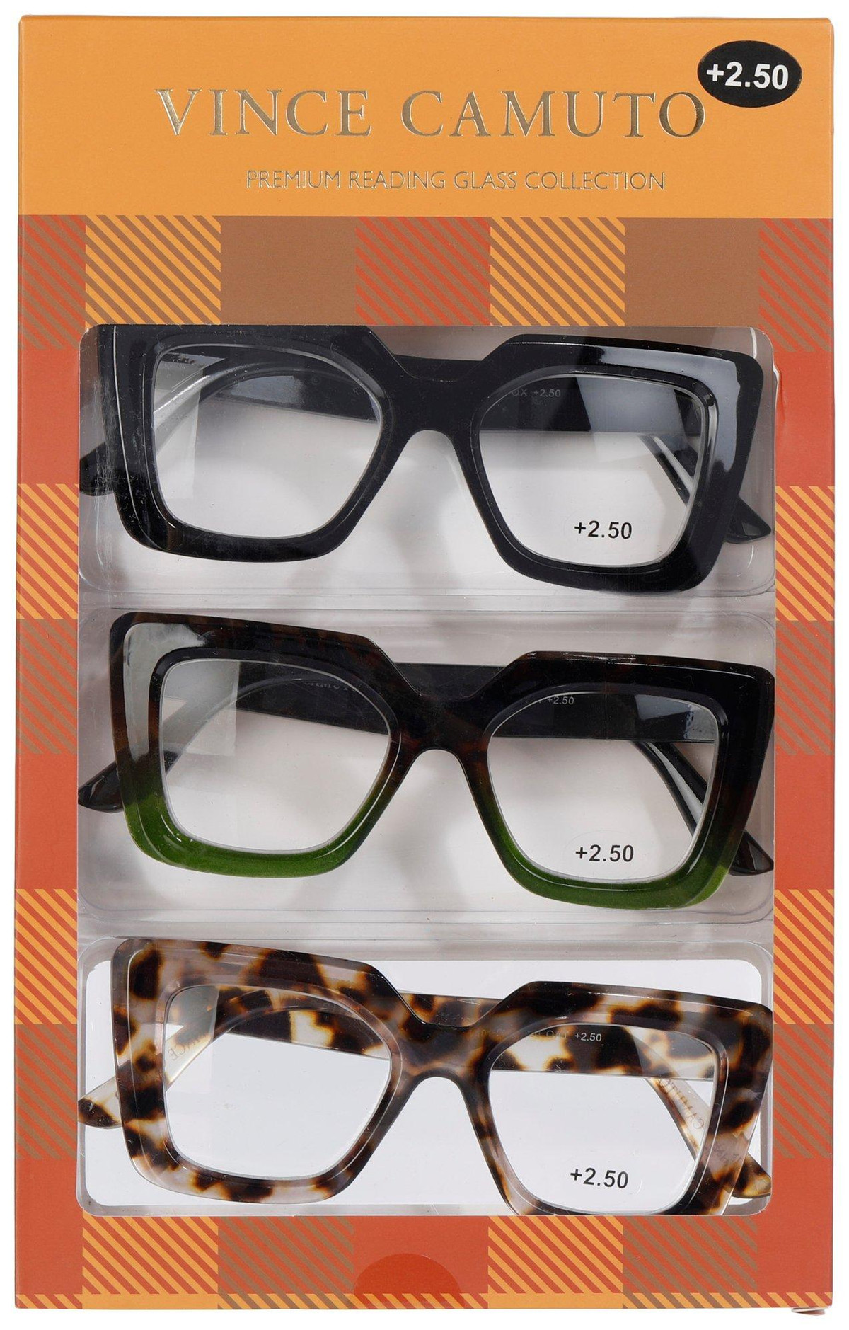 Discover refined style with this Vince Camuto set of reading glasses featuring +2.50 magnification. Each pair offers a distinct look: a rich dark green gradient, a warm brown animal print, and a sleek solid black. Designed for comfort and daily elegance, this trio brings variety and sophistication to your reading routine.