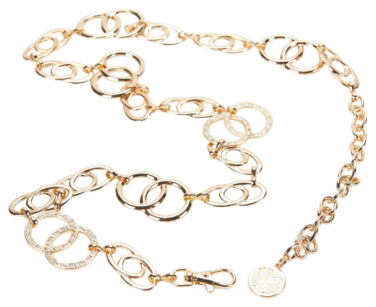 Introducing the Women’s Double Gold Chain Link Belt, a chic and versatile accessory that adds a touch of glamour to any ensemble. This belt features two elegant gold chain links, creating a sophisticated and stylish look. Perfect for accentuating your waistline, this belt effortlessly enhances both casual and formal outfits, making it a must-have addition to your wardrobe.