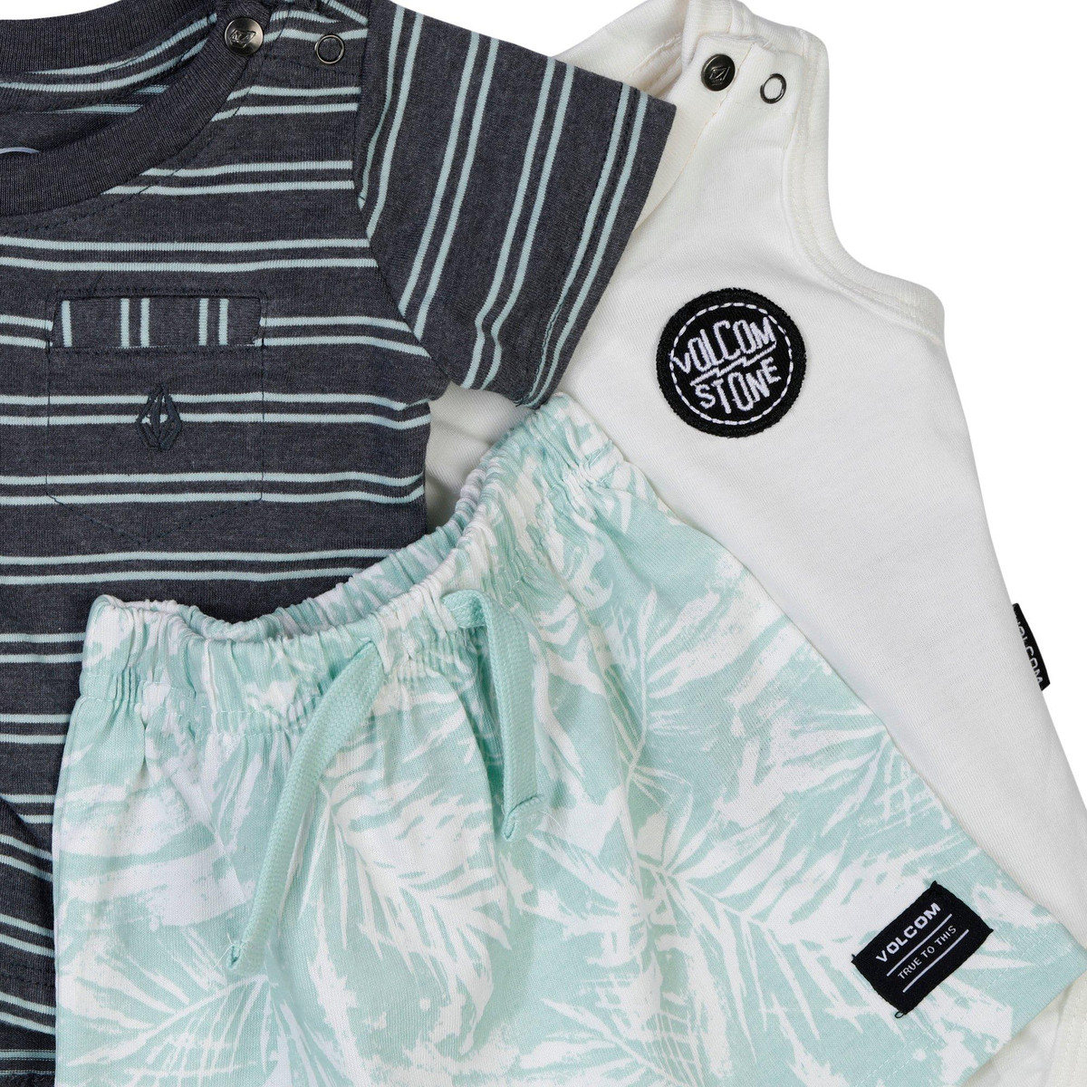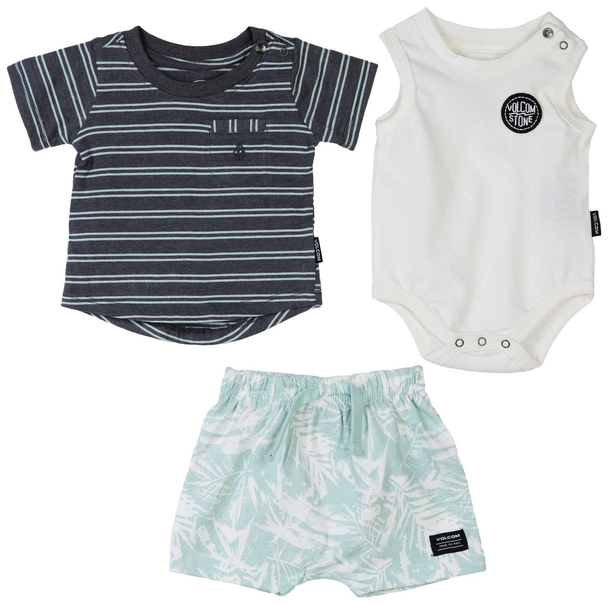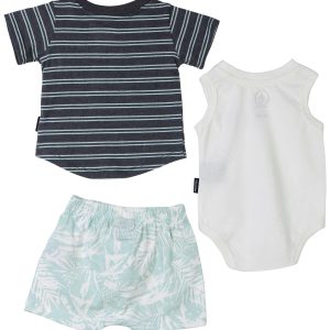 Dress your little one with ease using the Baby Boys 3 Pc Bodysuit Shorts T-Shirt Set, including a short sleeve shirt, coordinating shorts, and a sleeveless bodysuit. Designed for comfort, versatility, and effortless layering. Perfect for everyday play, outings, and warm-weather activities. Fabrication is 60% cotton, 40% polyester.