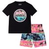 Elevate your casual look with this 2 Piece Set, designed for comfort and style. This set includes a vibrant graphic tee that adds a playful touch to any outfit. Paired with elastic waist shorts featuring double side slip pockets, it ensures practicality and ease for active days. Fabrication 60% cotton, 40% polyester