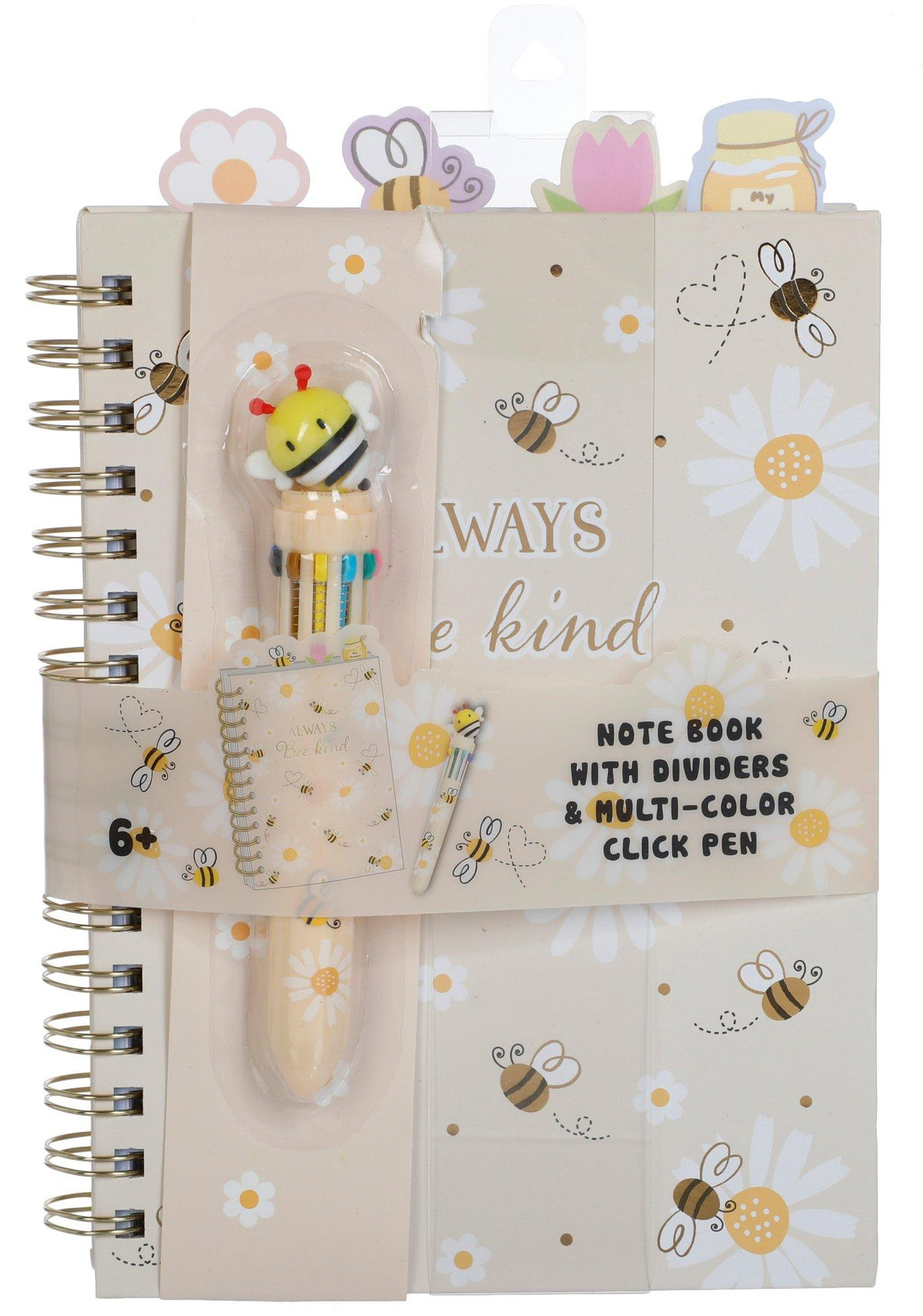 Inspire creativity and organization with this Girls 2 Pc Tween Journal Notebook and Pen Set, featuring a spiral notebook with themed dividers and bumble bee designs throughout. The included multi-color click pen is topped with a charming 3D bee figure for a fun finishing touch. Perfect for journaling, school notes, or daily lists. Store in a dry place to keep pages and pen in best condition. For ages 6 years+.