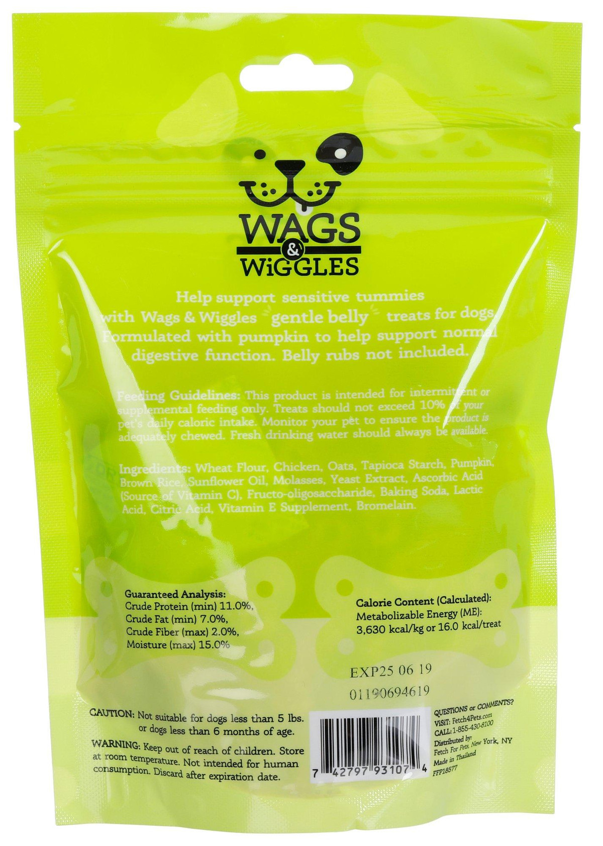 Wags and Wiggles Gentle Belly treats are made with pumpkin to support healthy digestion in your dog. These tasty bites are a great way to reward while helping maintain belly comfort. Comes in a 5.5 oz bag.