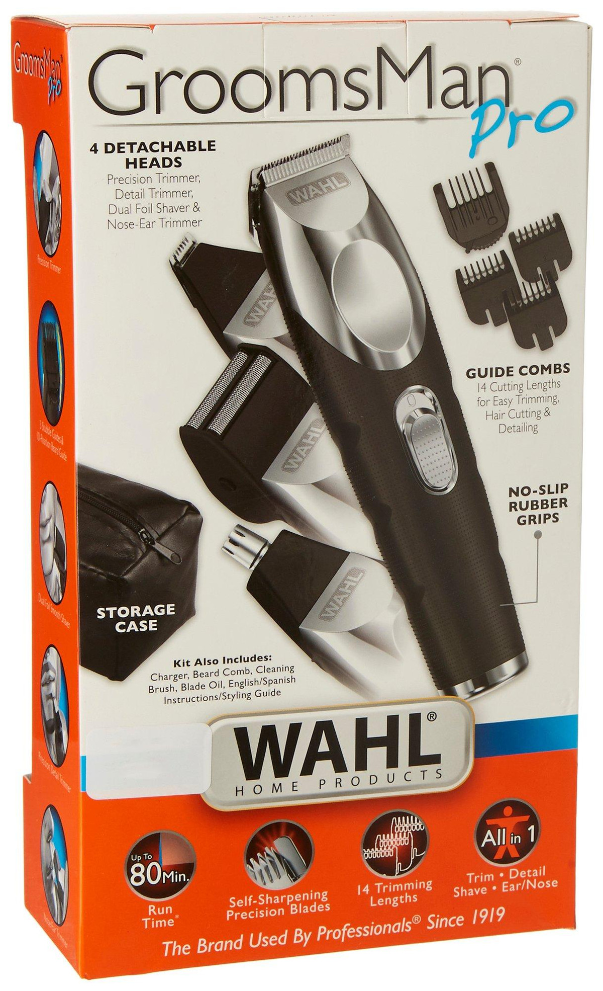 This grooming set from Wahl features an all-in-one package including a trimmer, detail shave, & ear/nose trimmer. Up to 80 minutes run time & 14 trimming lengths.