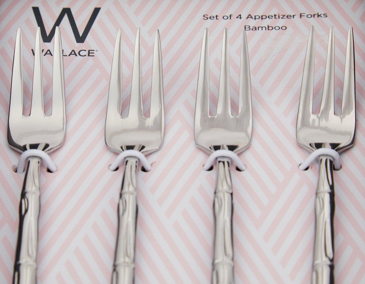 Wallace 4 pc Forged Stainless Steel Bamboo Appetizer Forks