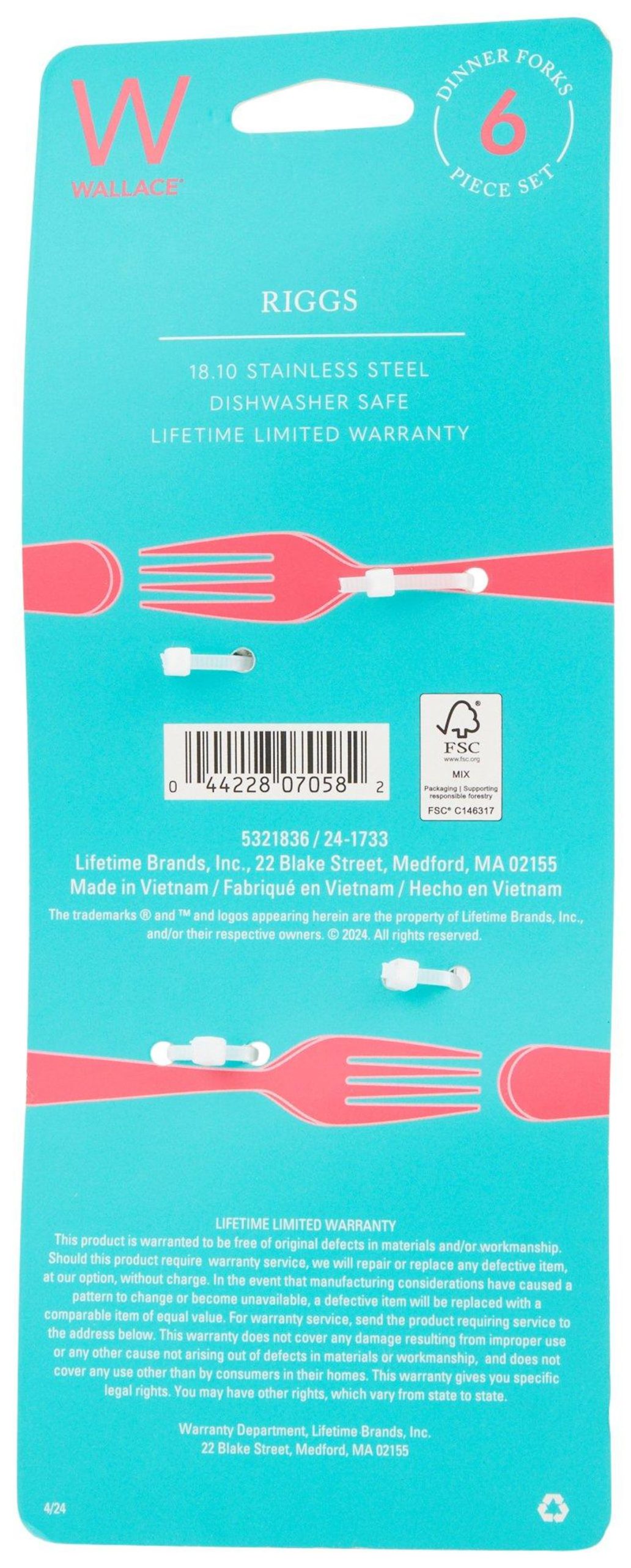 Wallace 6 pk Stainless Steel Dinner Forks