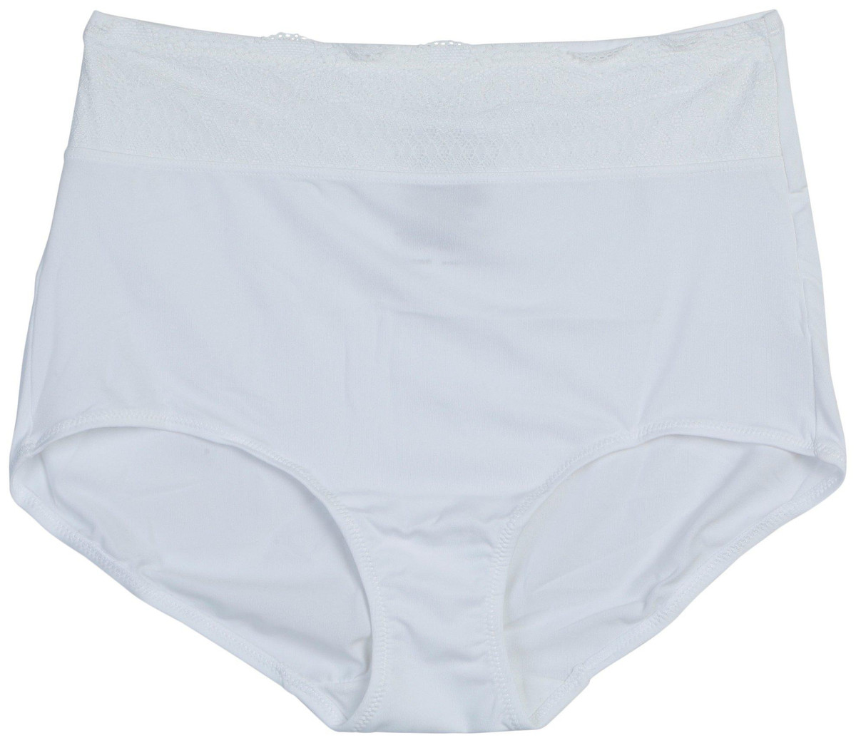 These No Pinching No Problem Lace High Waisted panties feature a gorgeous lace waistband for a smooth waistline that prevents muffin tops, innovative waist panel for relaxing fit, and an amazing lightweight silky microfiber that feels smooth against the skin. Style RS7401P.