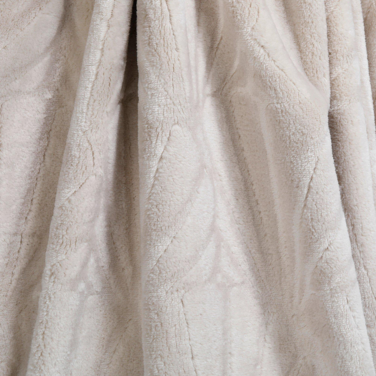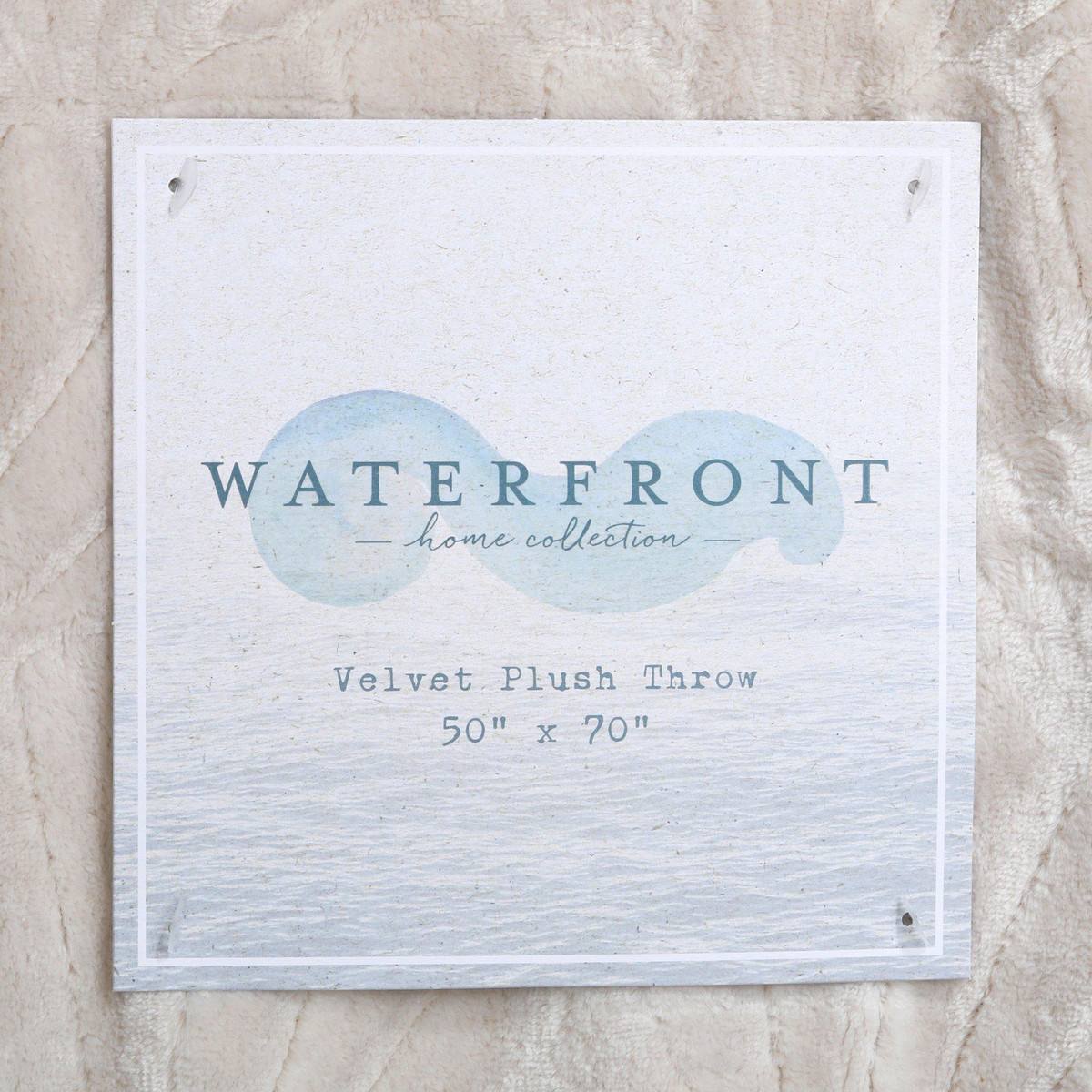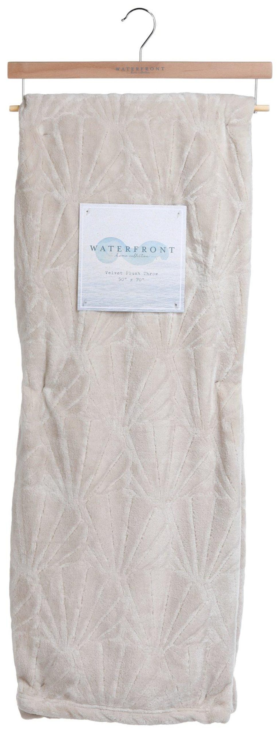Cozy up with the velvet plush throw, featuring a soft, light beige seashell stripe pattern with embossed, radiating designs that evoke sunbursts or ocean fans. Made from luxuriously plush velvet, this throw adds comfort and coastal charm to any sofa or bed. Measures 50 in x 70 in.
