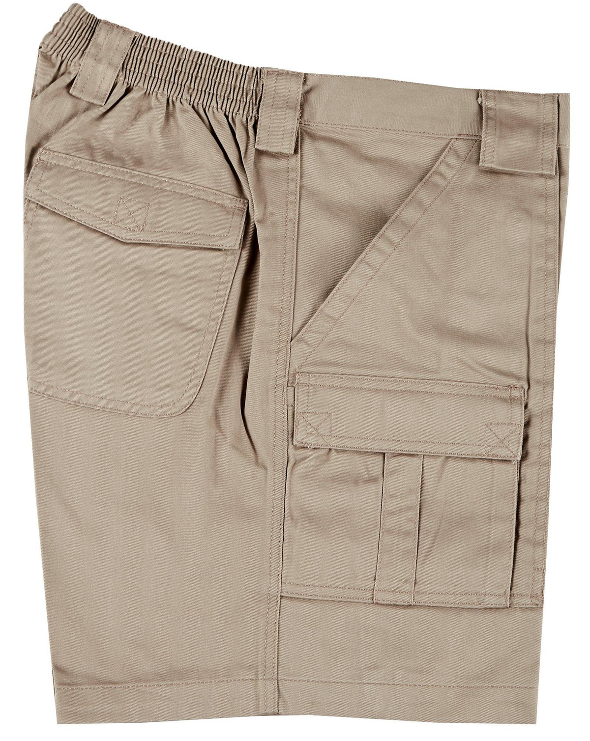 Style and comfort come together in these Weekender shorts. Twill Trader shorts are traditionally styled and feature tunnel belt loops, two front pork chop pockets, two back flap pockets, cargo pockets, and a back elastic waistband for casual comfort.