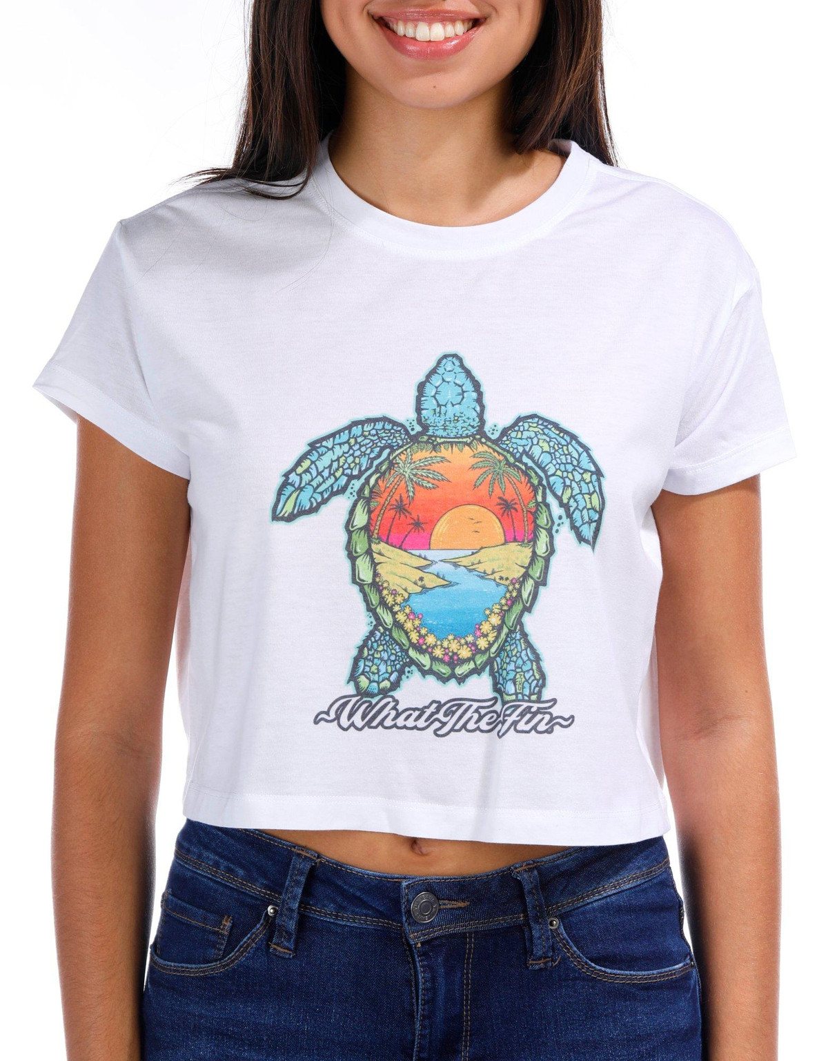 The Juniors Short Sleeve Cropped Turtle T-Shirt is a perfect blend of style and sustainability. Made from durable polyester and breathable cotton, this tee features eye-catching front graphics that make a bold statement. Ideal for any casual occasion, it offers both comfort and a commitment to eco-friendly fashion. Fabrication is 70% Polyester, 30% Cotton. Top length measures approximately 18 in.