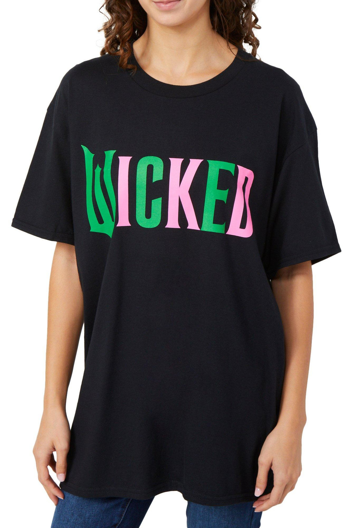 Make a bold statement with the Juniors Wicked Script Split Graphic Tee. Featuring Wicked front script, a classic crew neckline, and short sleeves, this tee blends comfort with standout style. Fabrication 100% cotton