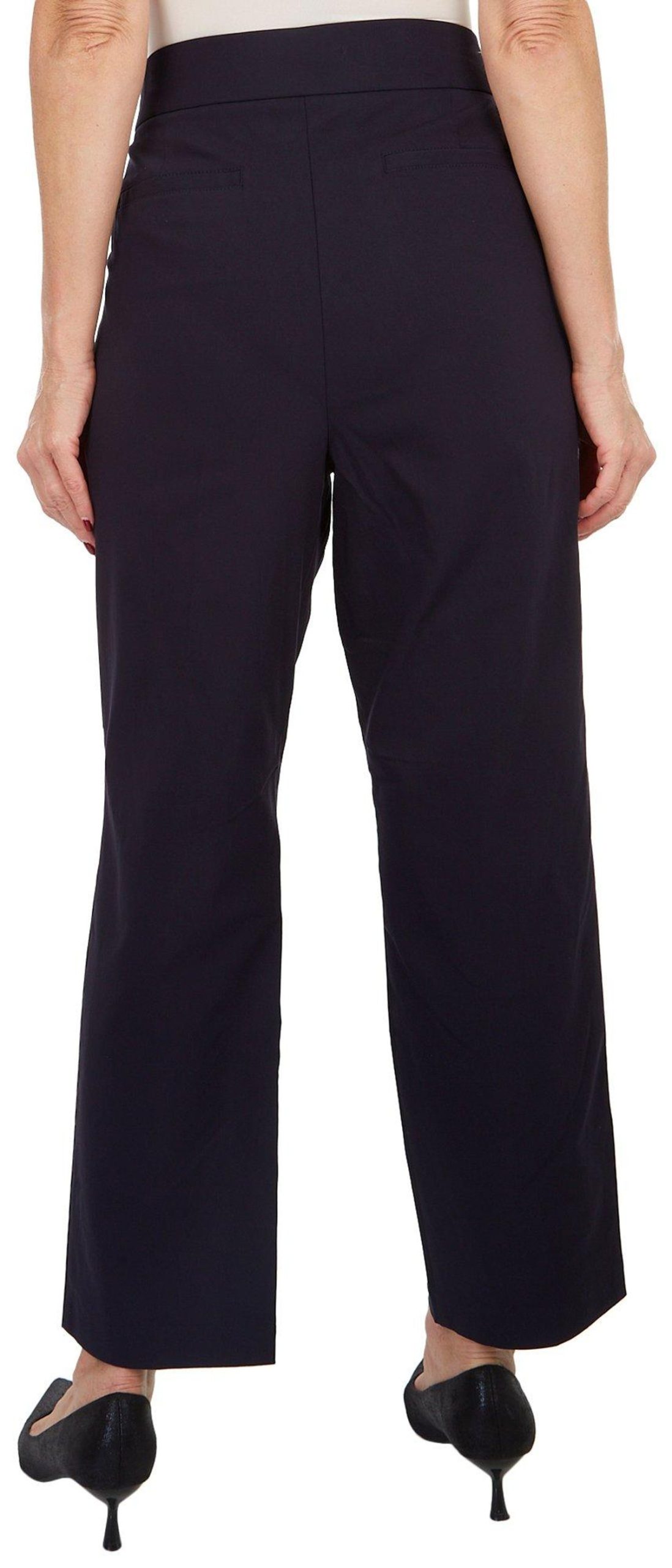 These pull-on pants feature a solid design on lightweight comfort stretch fabric, a hidden elastic waistband for optimal comfort, a slimming tummy panel, two front pockets, two back pockets, and slim fit. Inseam measures approximately 29 inches. Fabrication 75% rayon, 22% nylon, 3% spandex.