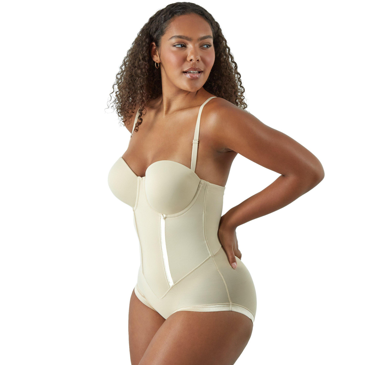 This ultra-firm all-in-one convertible body shaper is just what you need from slipping into a clingy party dress to everyday smoothing and support. It targets your tummy, waist, and rear with strategic zones and shapely princess seams that smooth, sculpt, and control bulges – so you’ll look your best under form-fitting fashions. Its adjustable straps let you customize your firm-control body briefer for strapless, racerback, one-shoulder, or traditional wear.