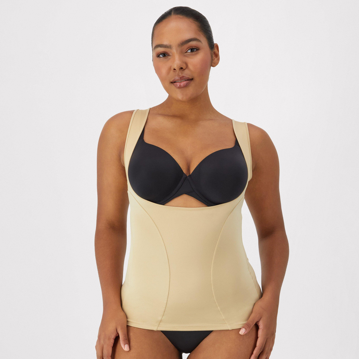 Look your best and feel confident, with ultra-firm control, all-over smoothing torsette, comfortable enough for everyday wear. This open-bust shapewear cami lets you wear your favorite bra for the support you need with the slimming you want to feel sleek and sexy on any occasion. Cool Comfort® fabric features moisture-wicking technology to help your skin feel cool and comfortable for hours on end. This smoothing shapewear will have you ready for whatever the day or evening may bring.