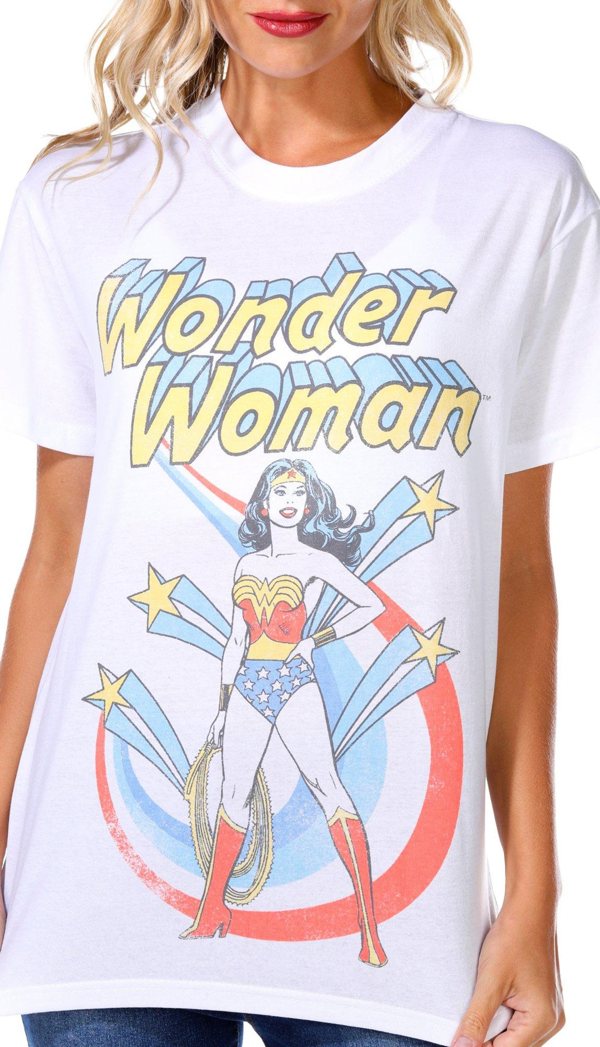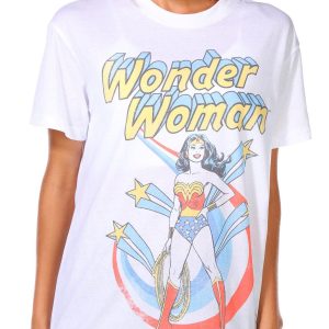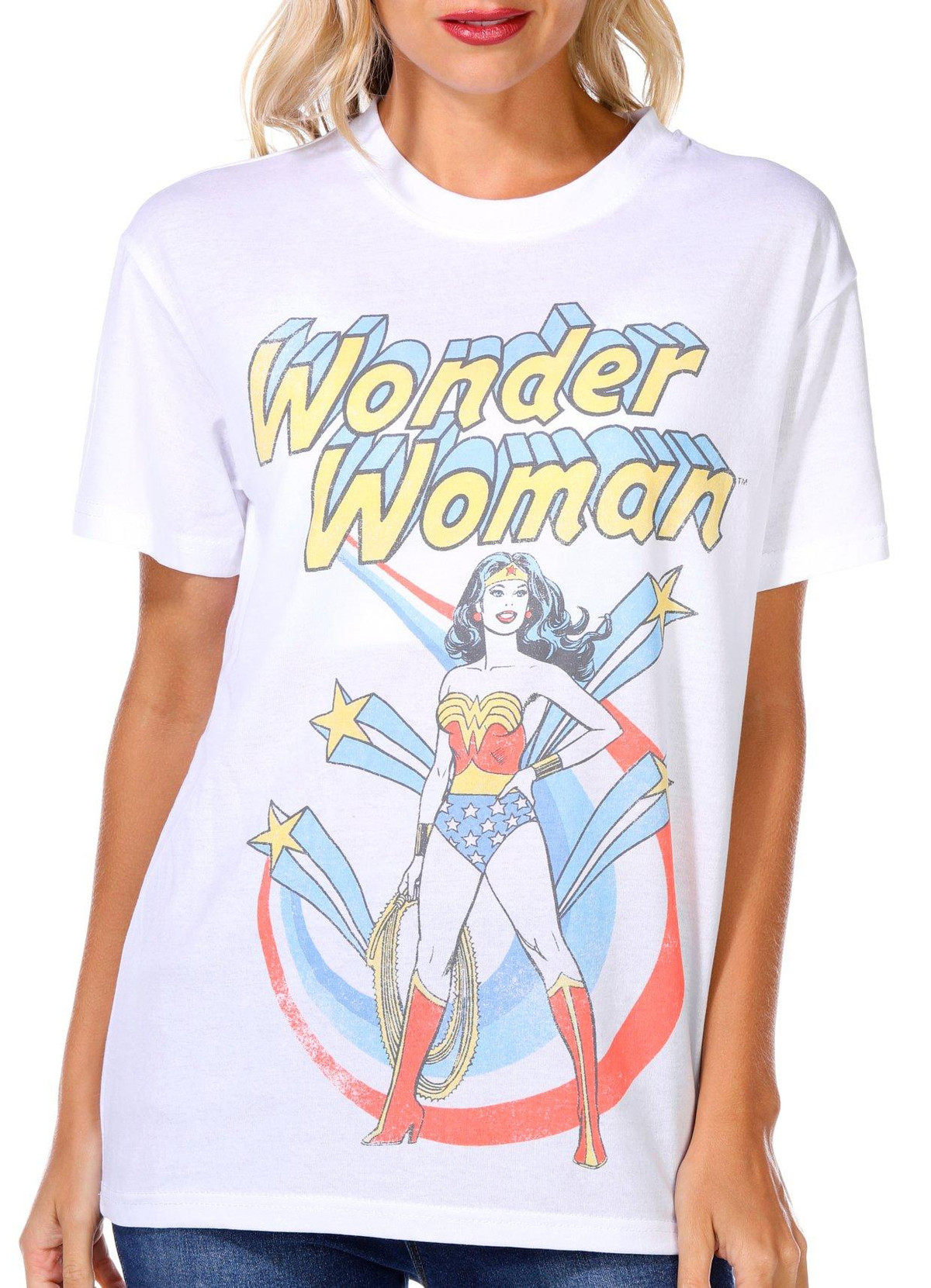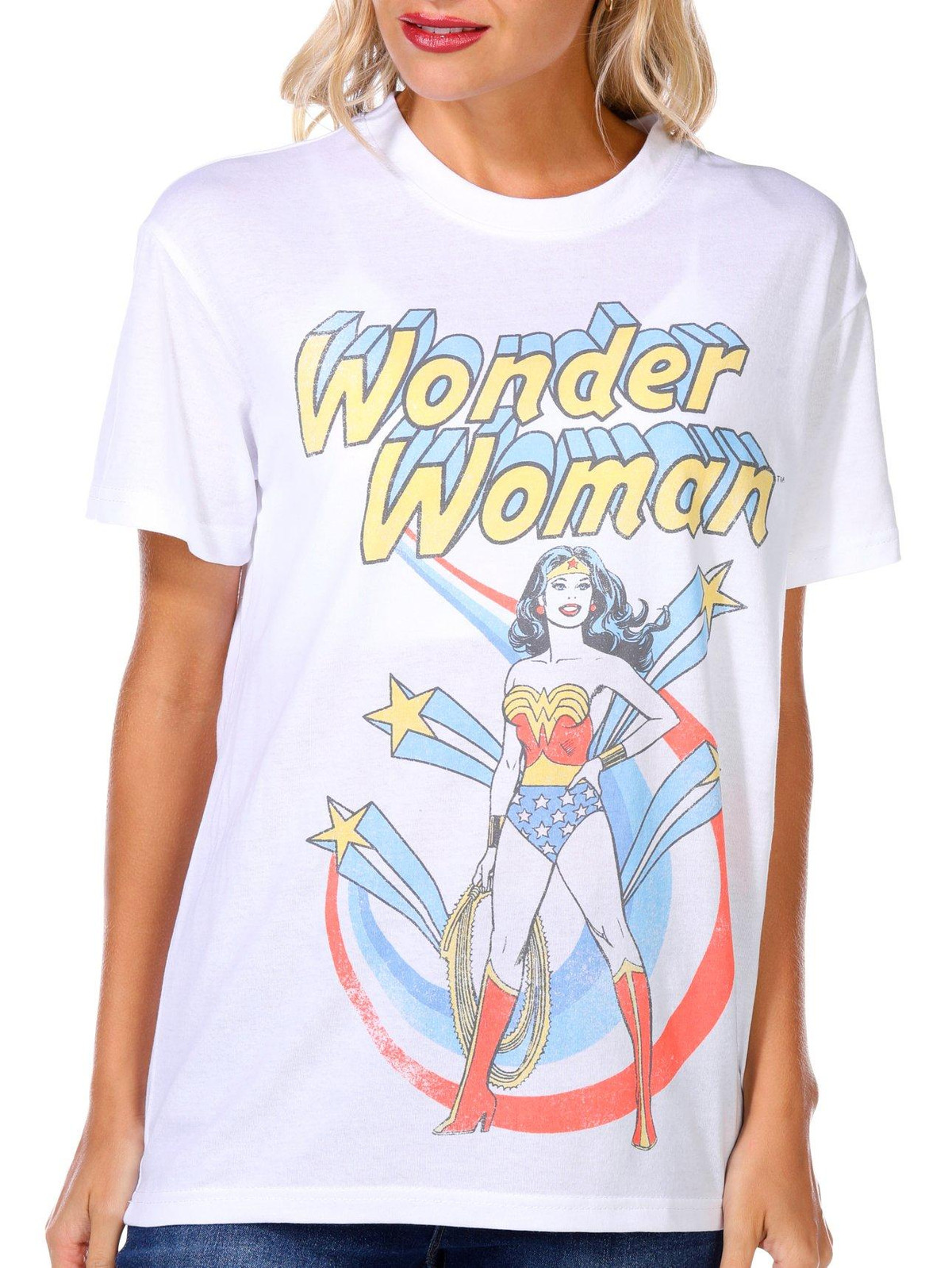 Show off your superhero style with this Juniors Wonder Woman Graphic Tee. Featuring a classic crew neckline, short sleeves, and a bold Wonder Woman graphic, this tee blends comfort with iconic flair. Fabrication 100% cotton
