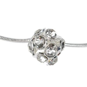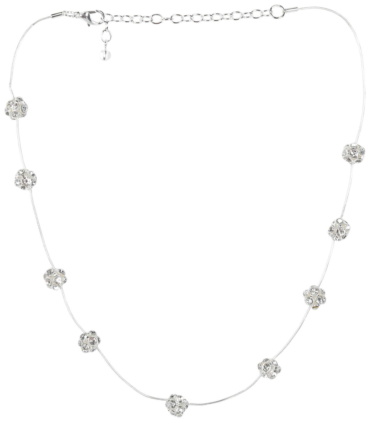 You’re Invited jewelry offers touches of elegance with this necklace featuring a silver tone snake chain with stationed pave rhinestone balls.