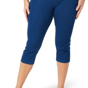 Flatter your figure in these slim crop denim capris, designed with a comfy elastic waistband and strategically placed back pockets for a sleek, streamlined look. The slimming fit hugs in all the right places, offering effortless style and all day comfort, perfect for dressing up or down with ease. Fabrication is 53% cotton, 32% polyester, 15% spandex.