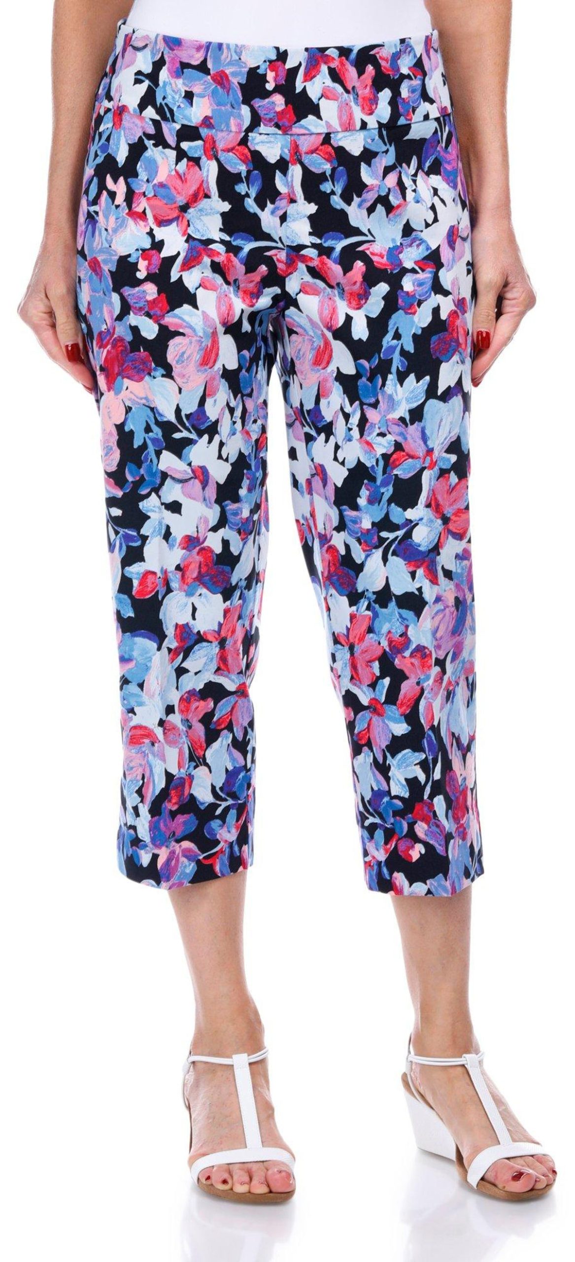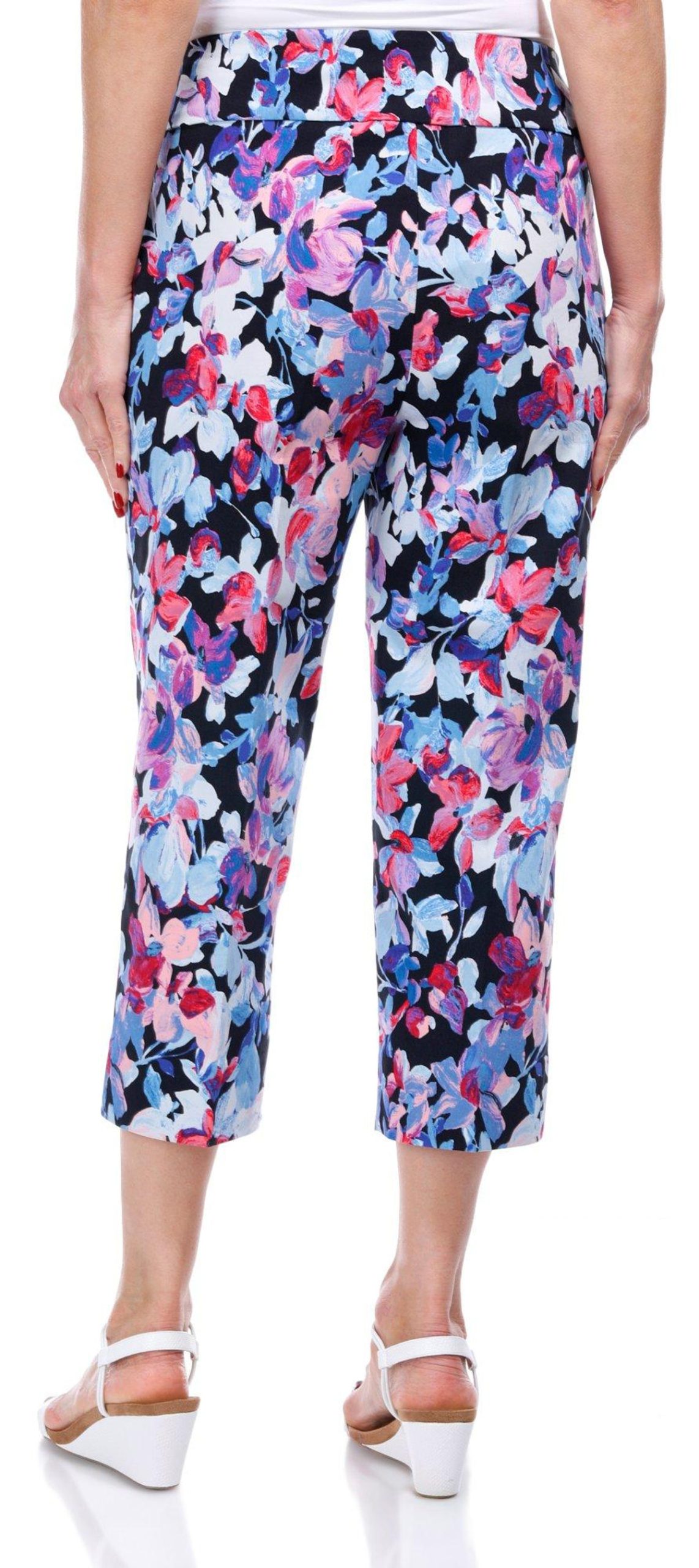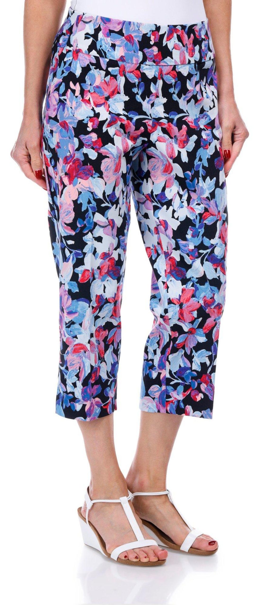 Introducing these Mill Capris, where style meets functionality. These capris feature a vibrant print pattern that adds a pop of color to your wardrobe. The standout feature is the innovative mesh tummy panel, designed to provide extra support and a flattering fit. Perfect for any activity, from yoga to running errands, the Mill Capris offer comfort and confidence in every move. Inseam measures approximately 23 in. Fabrication is 76% rayon, 21% nylon, 3% spandex.