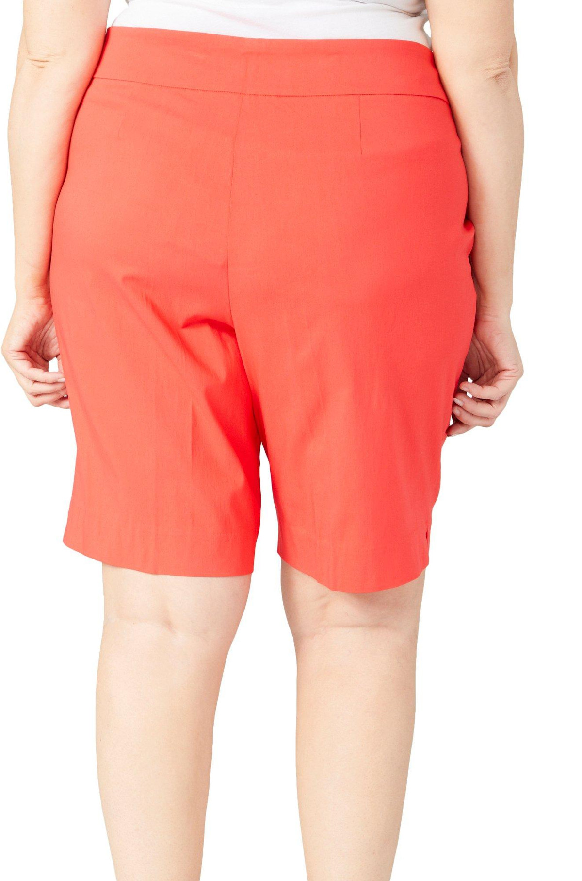 These Plus Solid Millennium Bermuda Shorts offer a sleek, flattering fit with a comfortable, stretchy fabric blend. Designed for everyday wear, they feature a classic solid color and a versatile length, making them perfect for both casual and semi-dressy occasions. Stylish, breathable, and easy to wear. Inseam measures approximately 12 in. Fabrication is 76% rayon, 21% nylon, 3% spandex.