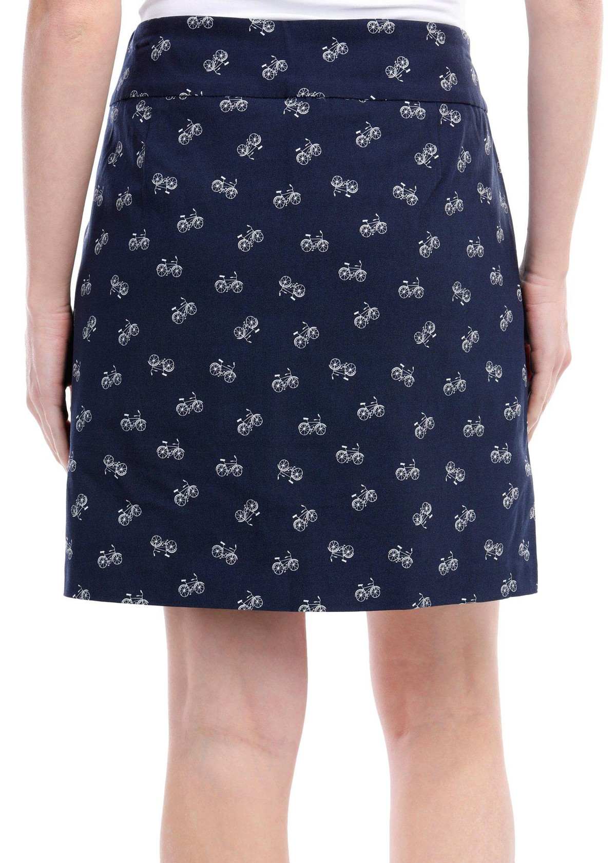 This Bicycle Print Skort is a fun and functional addition to your wardrobe. Featuring a playful bicycle print, this skort adds a touch of whimsy to your look. The double front pockets provide convenient storage for your essentials, while the skort design combines the comfort of shorts with the stylish appearance of a skirt. Perfect for an active day out or a casual outing, this skort effortlessly blends practicality and charm. Fabrication is 76% rayon, 21% nylon, 3% spandex.