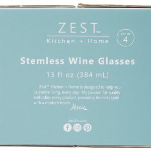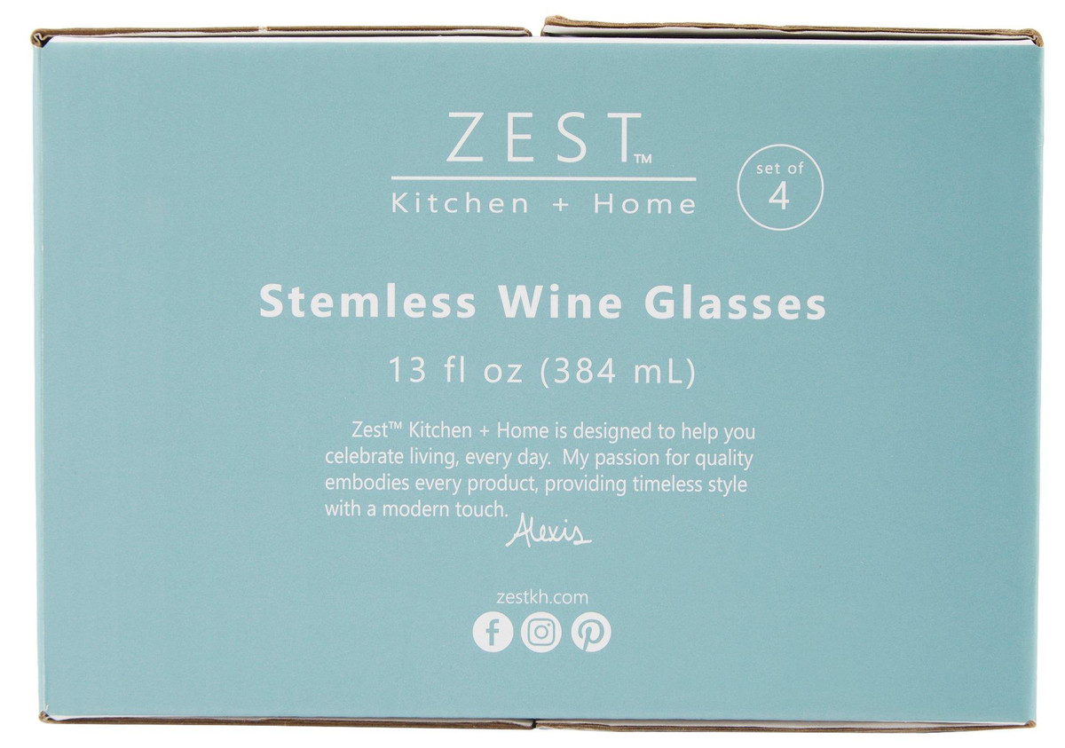 The 4-Pack Stemless Wine Glasses are designed for both style and convenience. Each glass holds 13 oz, making them perfect for wine, cocktails, or any favorite drink. Crafted for durability and ease of use, these glasses are dishwasher safe (top rack only), ensuring effortless cleaning. The stemless design adds a modern touch while offering stability, making them a great addition to any dining or entertaining setup.