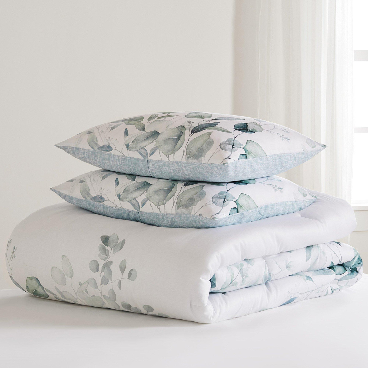 ZEST Kitchen + Home is designed to help you celebrate life every day. Our passion for quality embodies every product, providing timeless style with a modern touch. Only available at Bealls Florida! This comforter set features a a stylish botanical design, 1 standard size comforter (full measurements for each size in traits) and two shams (1 included with the twin set.) Fabrication is cotton and polyester. Certified STANDARD 100 by OEKO-TEX.